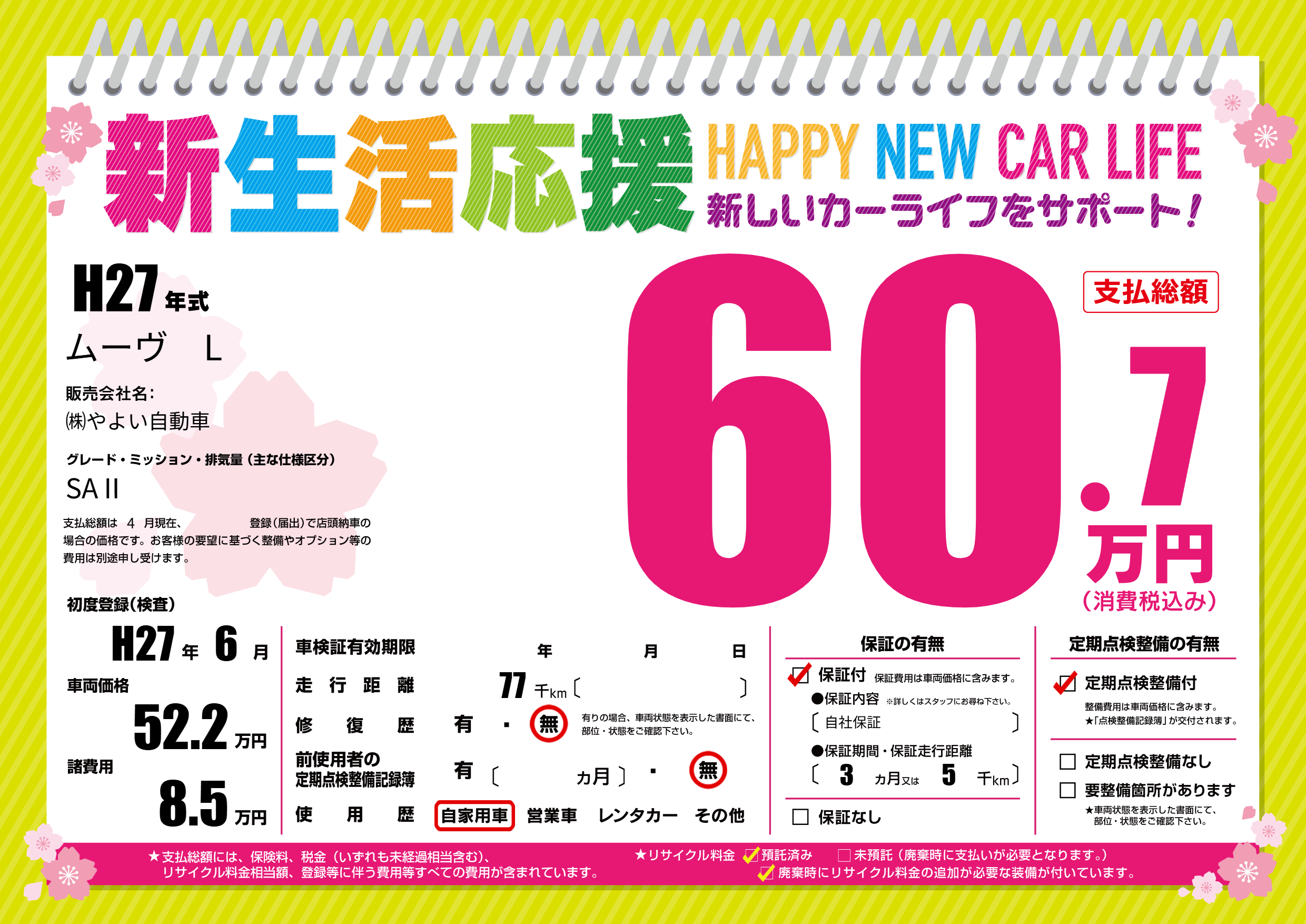 | 定期点検整備 | 定期点検整備あり | ||