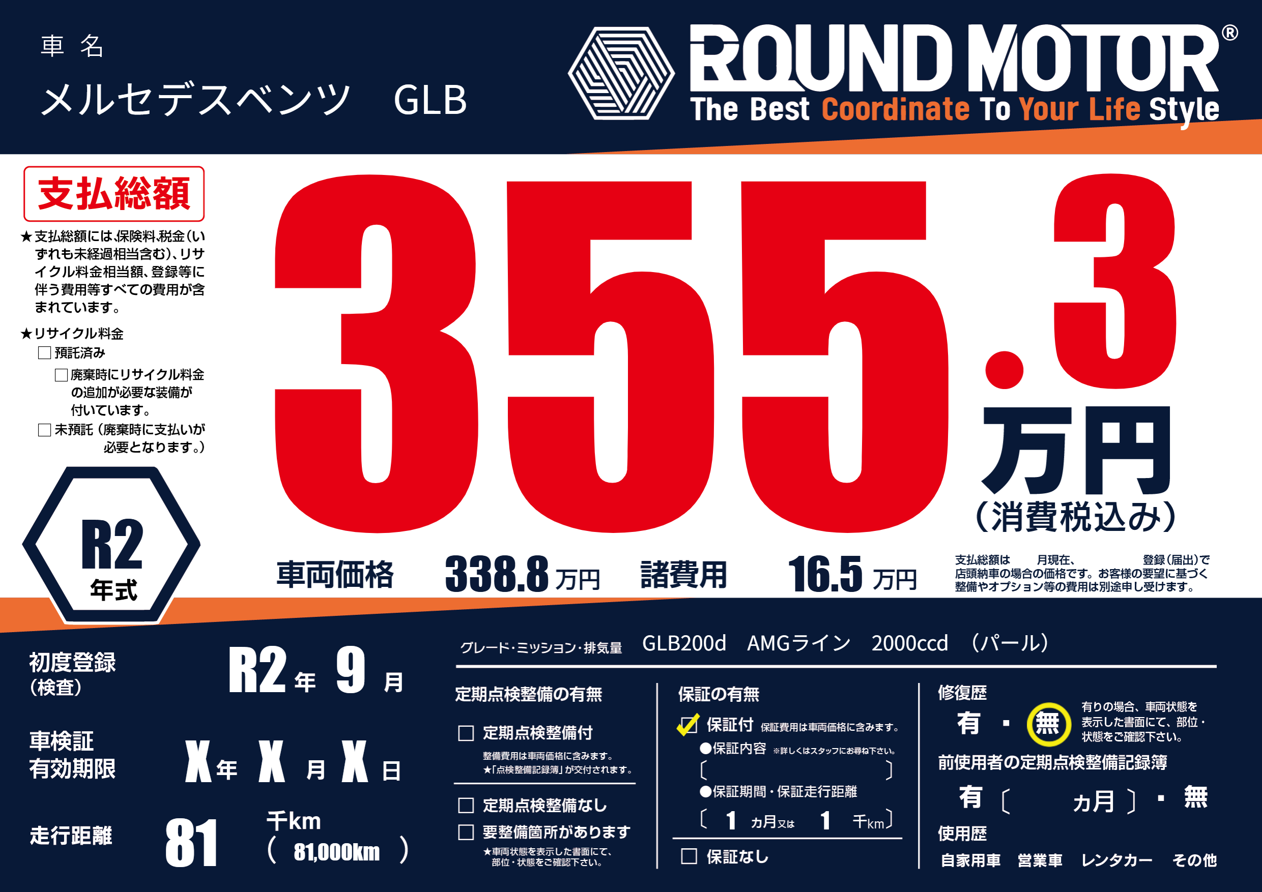 | 車検制限 | X年 X月 X日 | ||