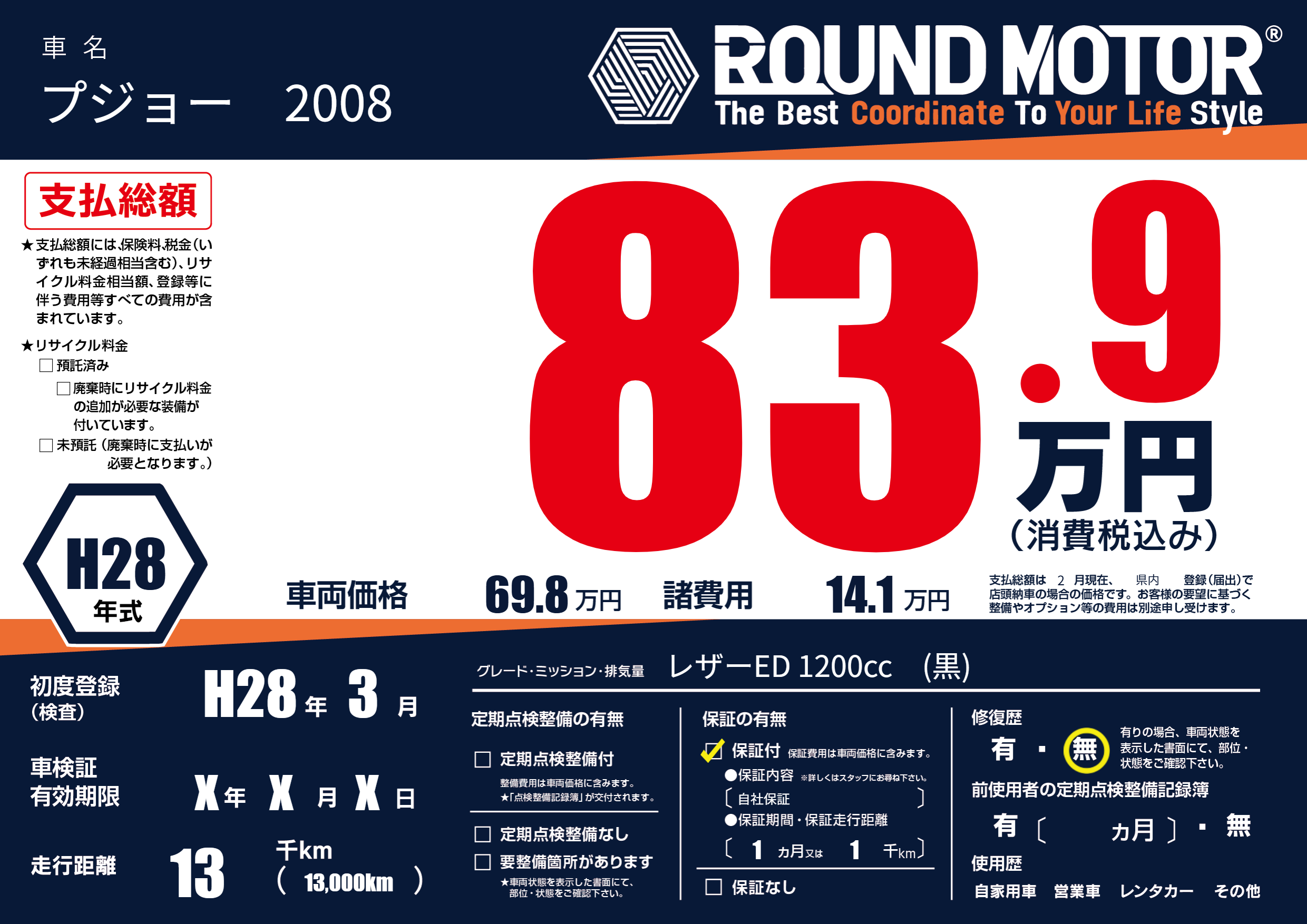 | 車名 | プジョー 2008 | グレード ミッション 排気量 |