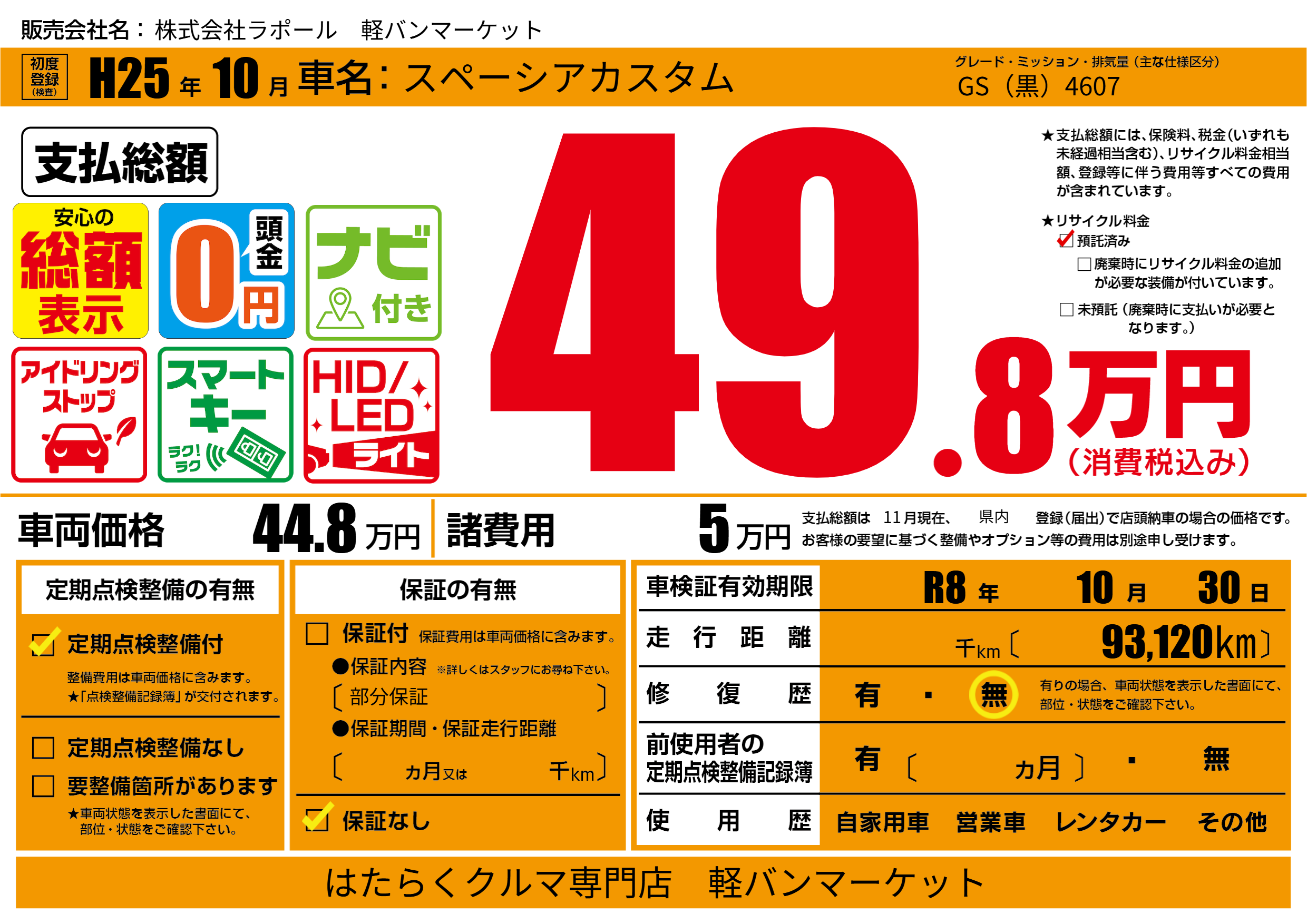 なし | 車検制限 | R8年10月30月 |