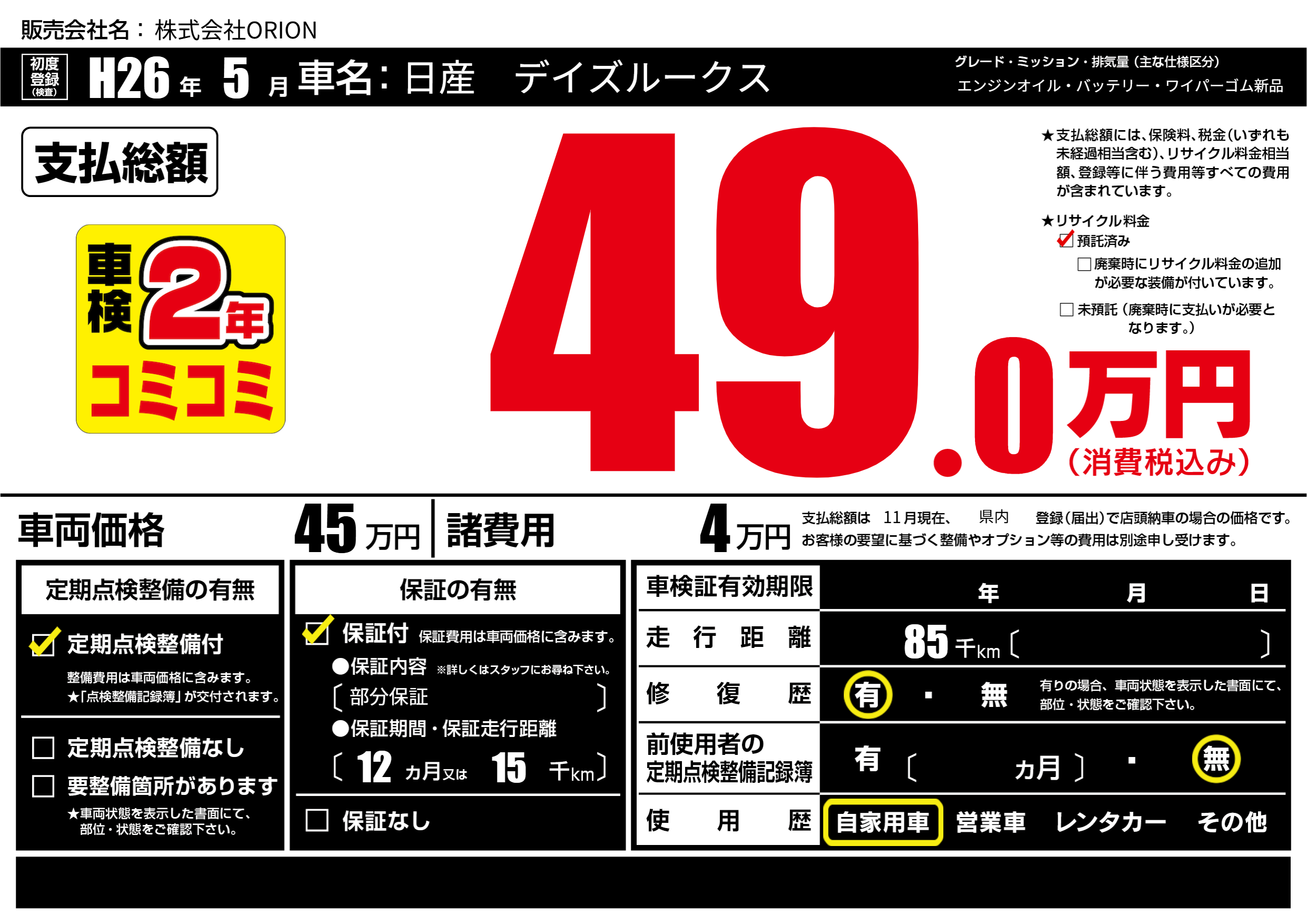 | 定期点検整備 | 定期点検整備あり | ||