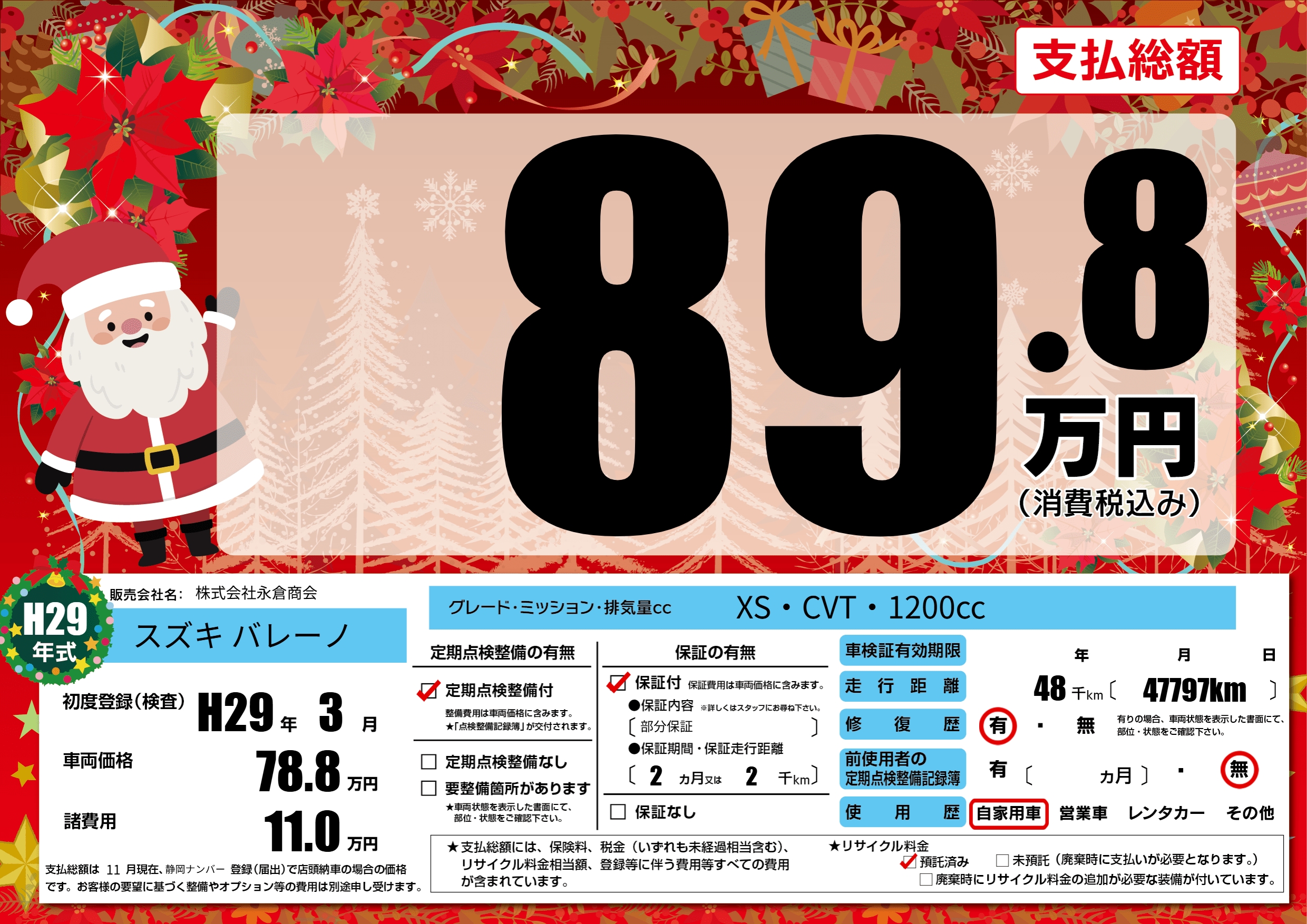 | 車名 | スズキ バレーノ | グレード ミッション 排気量 |