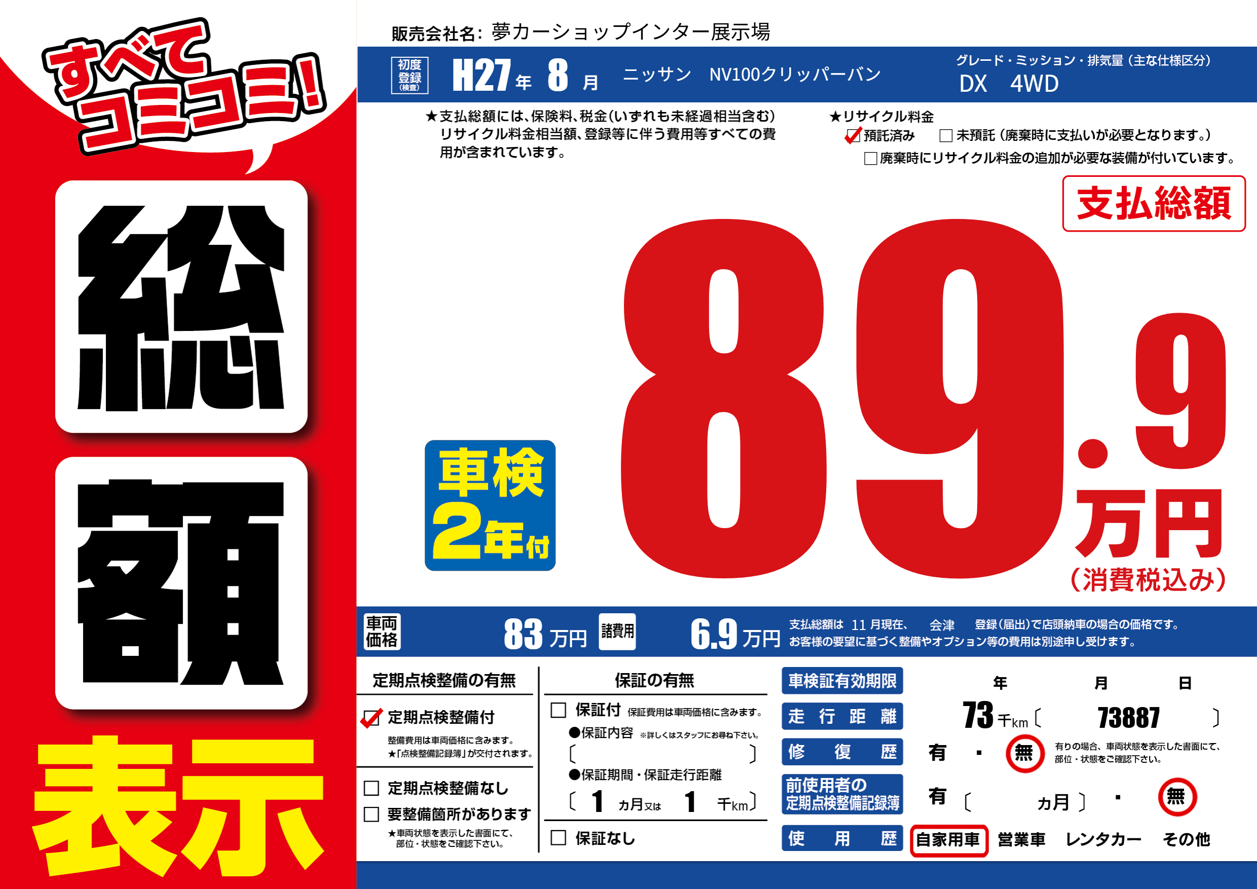 | 定期点検整備 | 定期点検整備あり | ||