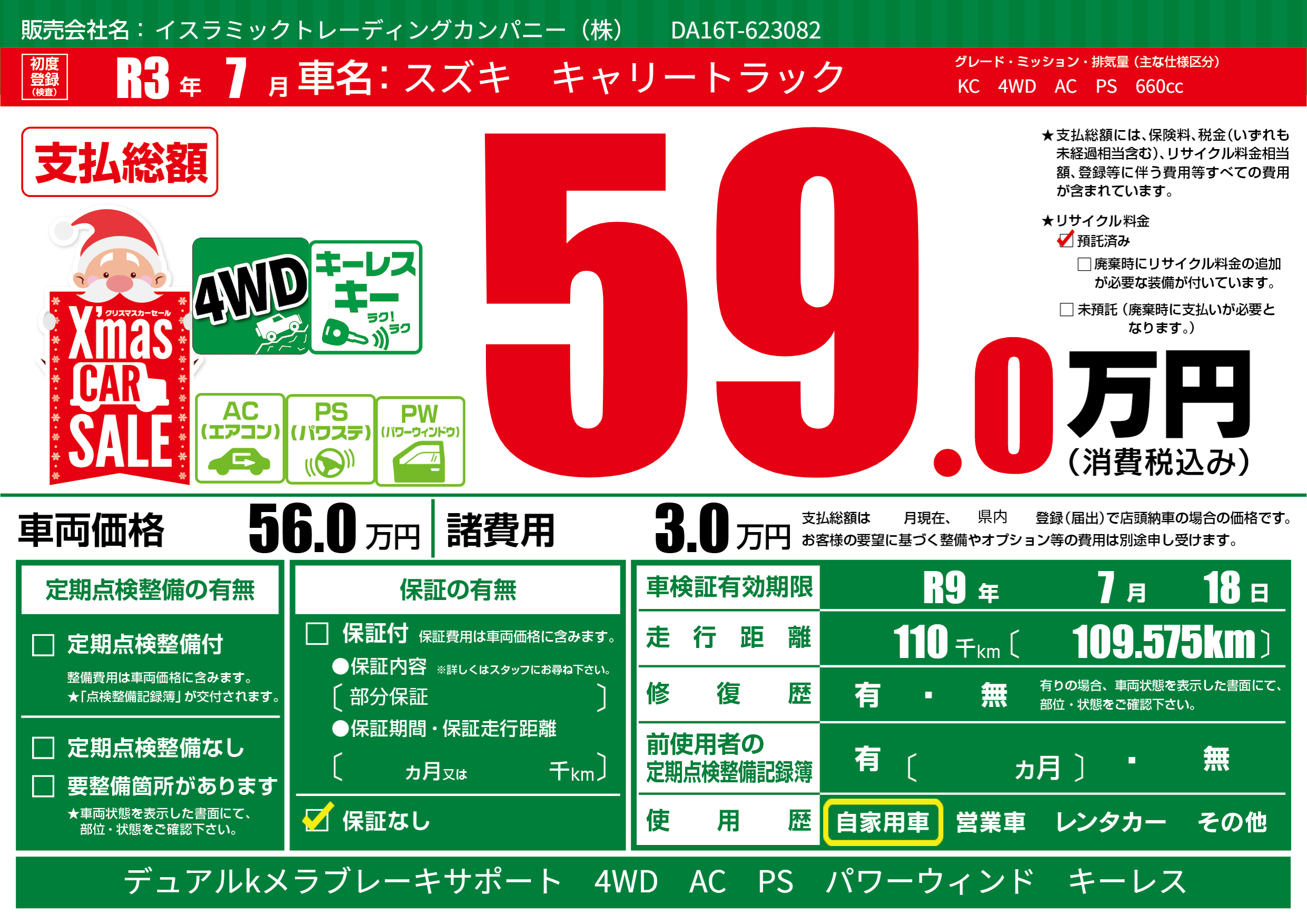 なし | 車検制限 | R9年7月18月 |