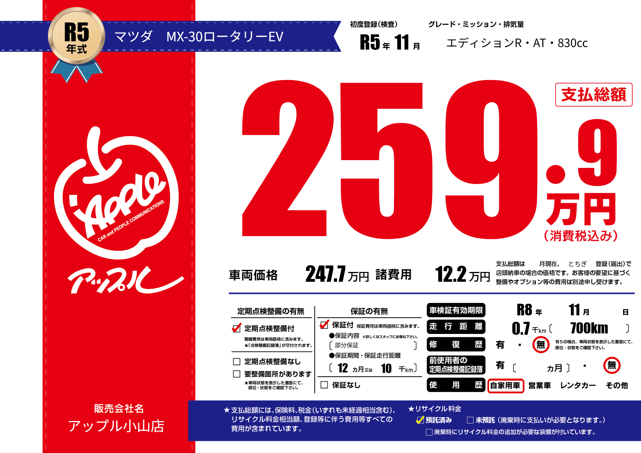 | リサイクル料金 預託済 |