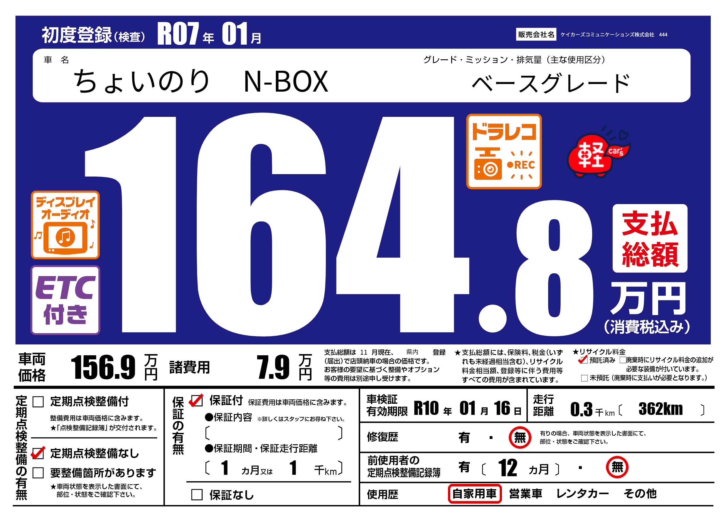 | 走行キロ | - | 初年度登録 | R07年01月 |