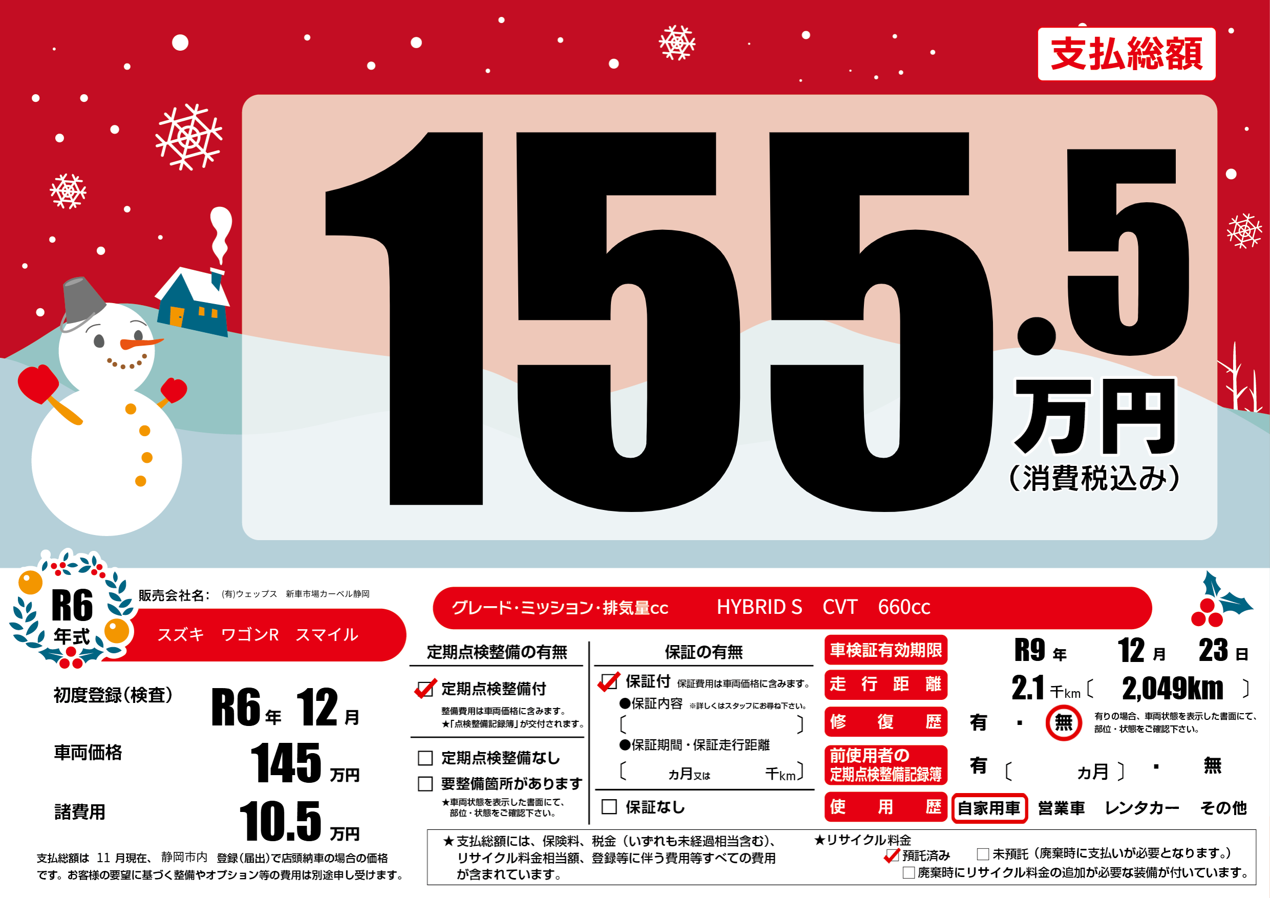 | 車名 | スズキ ワゴンR スマイル | グレード ミッション 排気量 |
