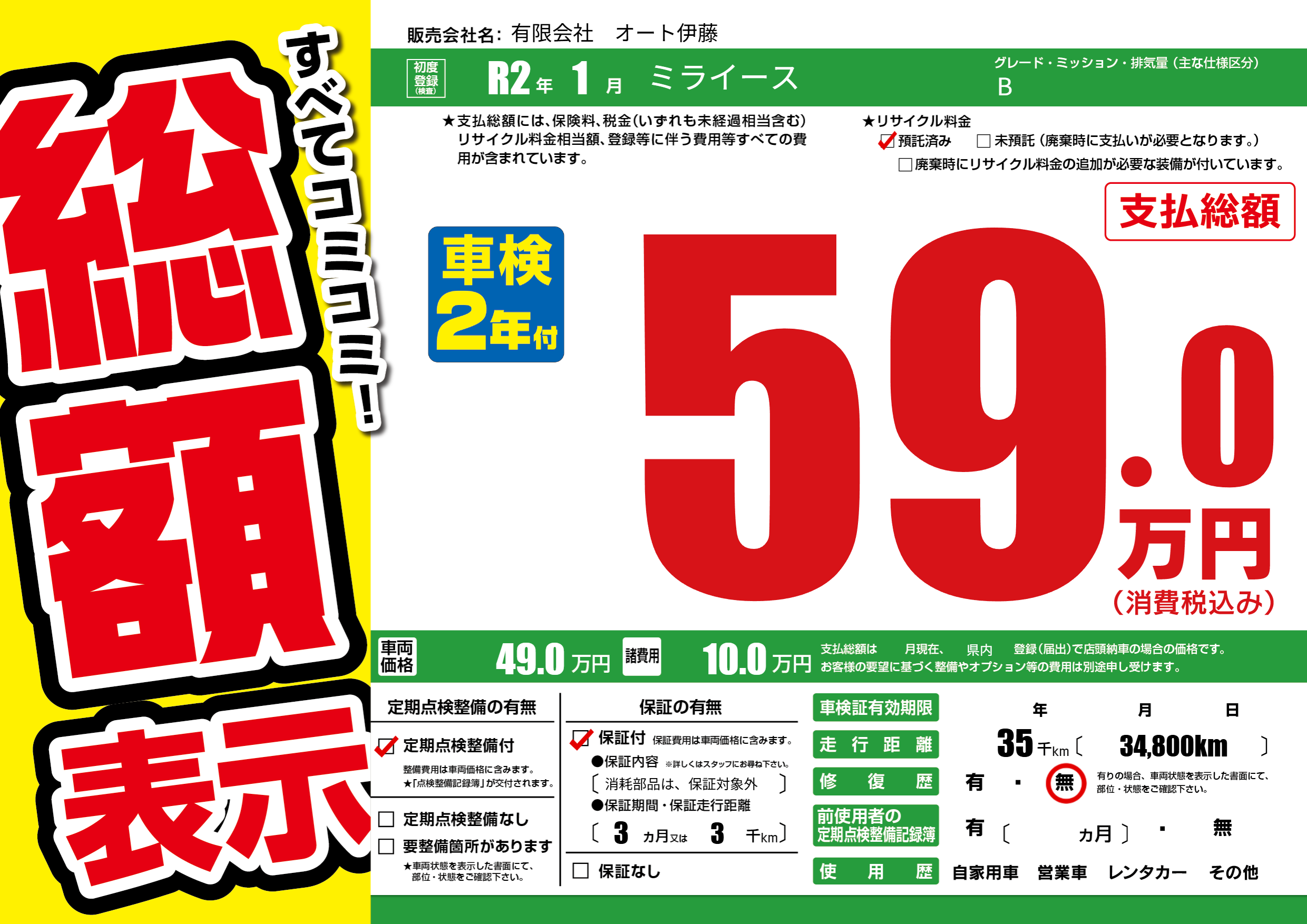 | 車名 | ミライース | グレード ミッション 排気量 |