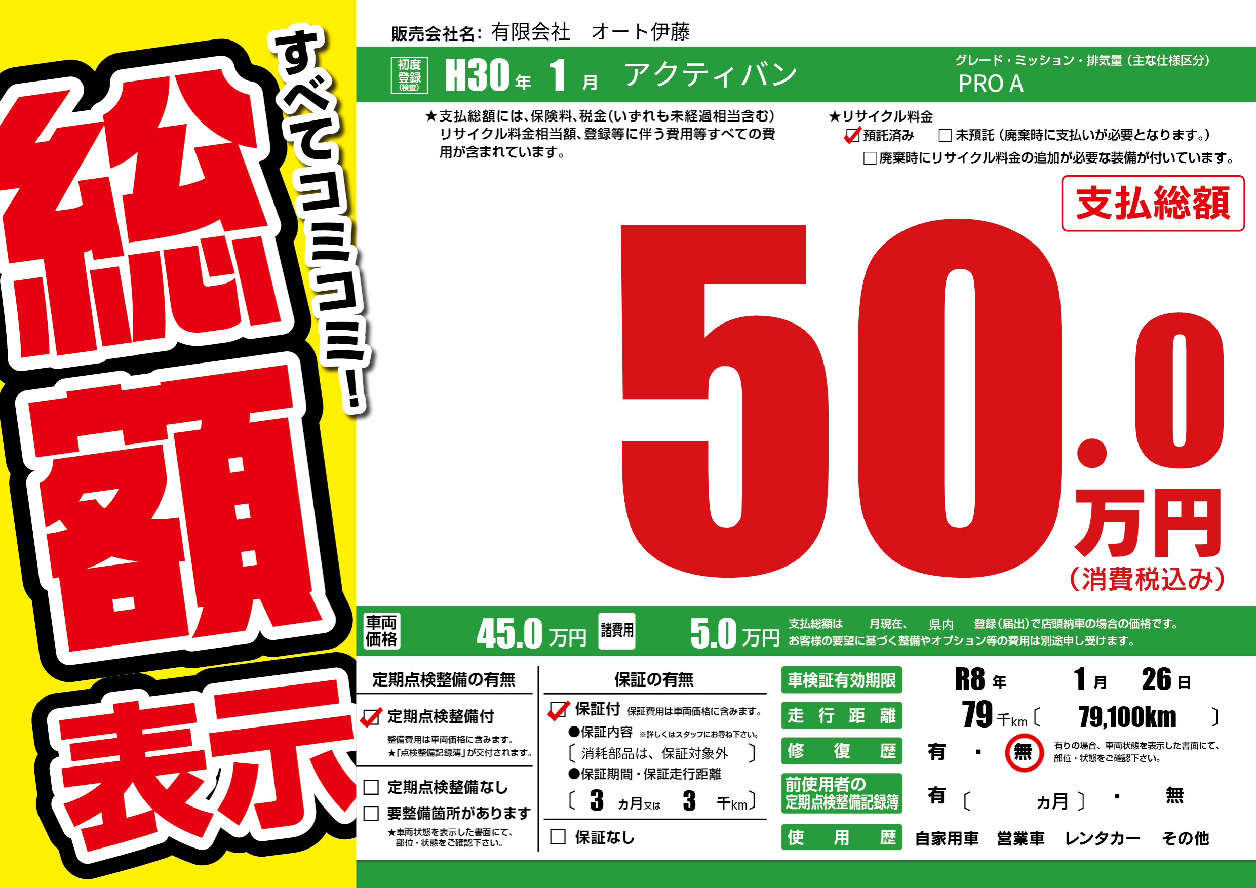 | 車名 | アクティバン | グレード ミッション 排気量 |