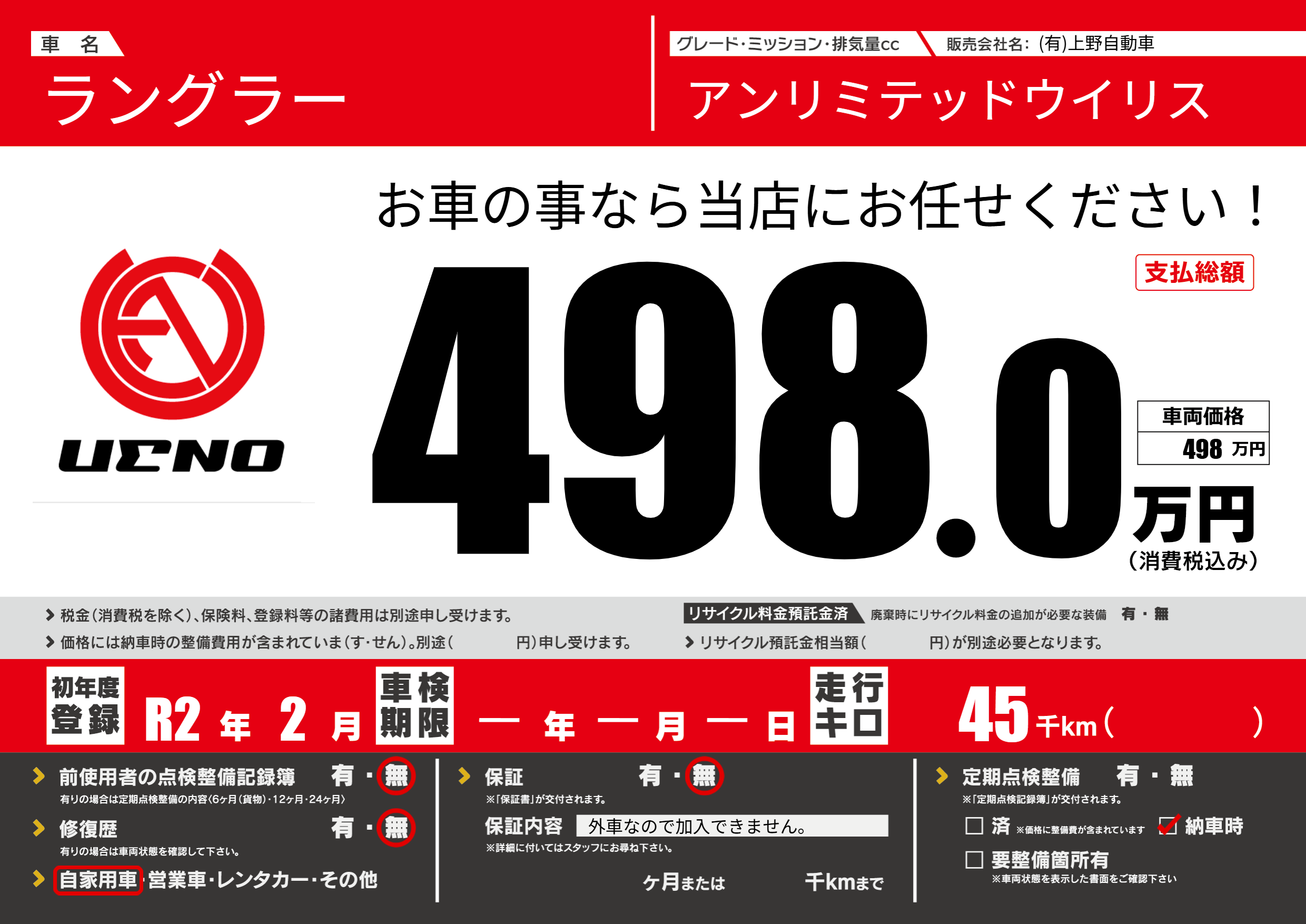 | 車検制限 | -年 -月 -日 | ||