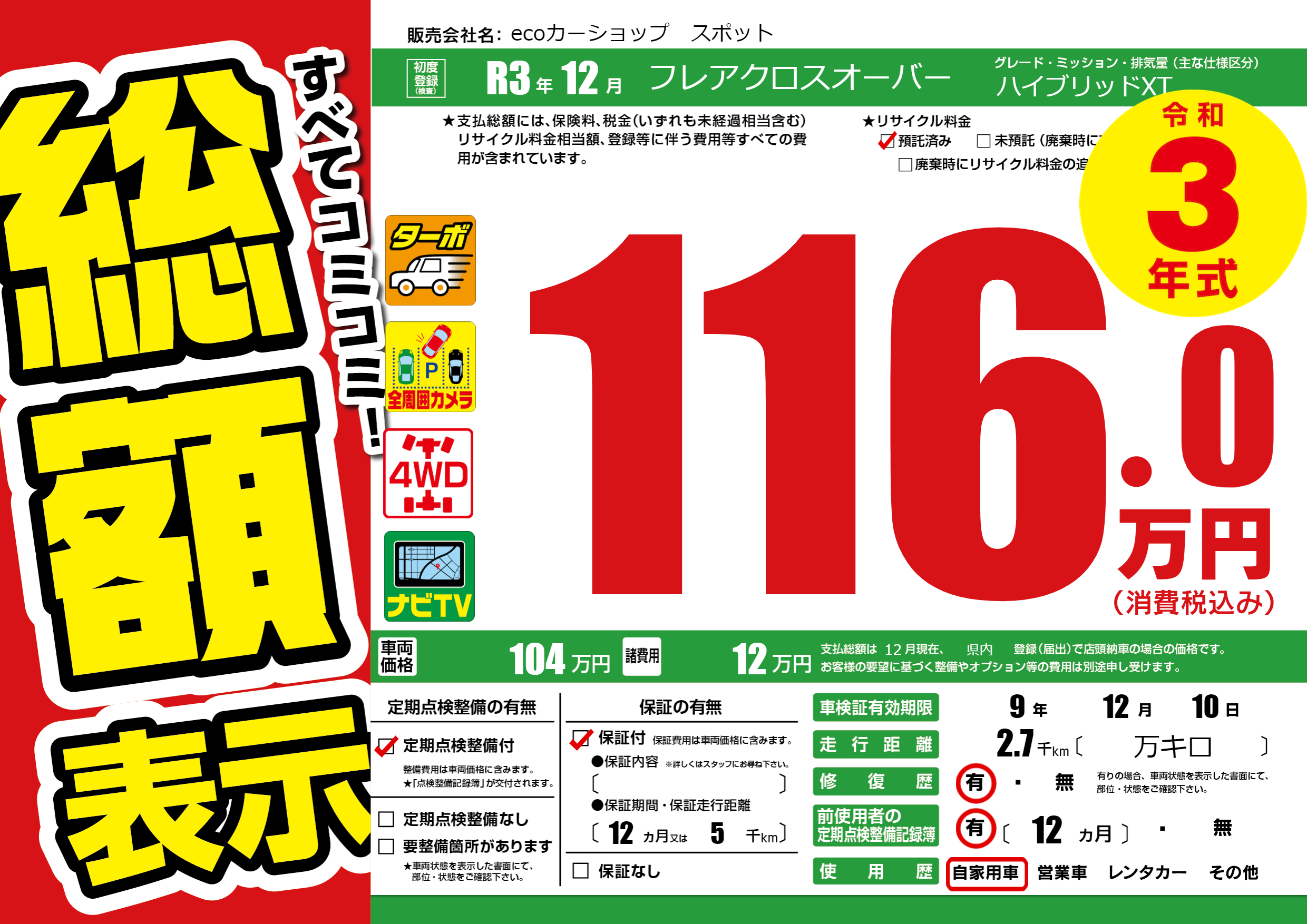 | 車名 | フレアクロスオーバー | グレード ミッション 排気量 |