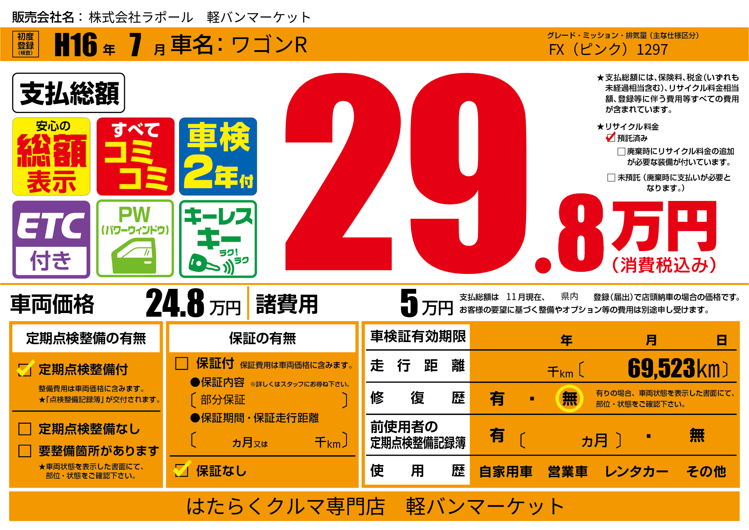 株式会社ラポール 軽バンマーケットの展示車をすべて見る