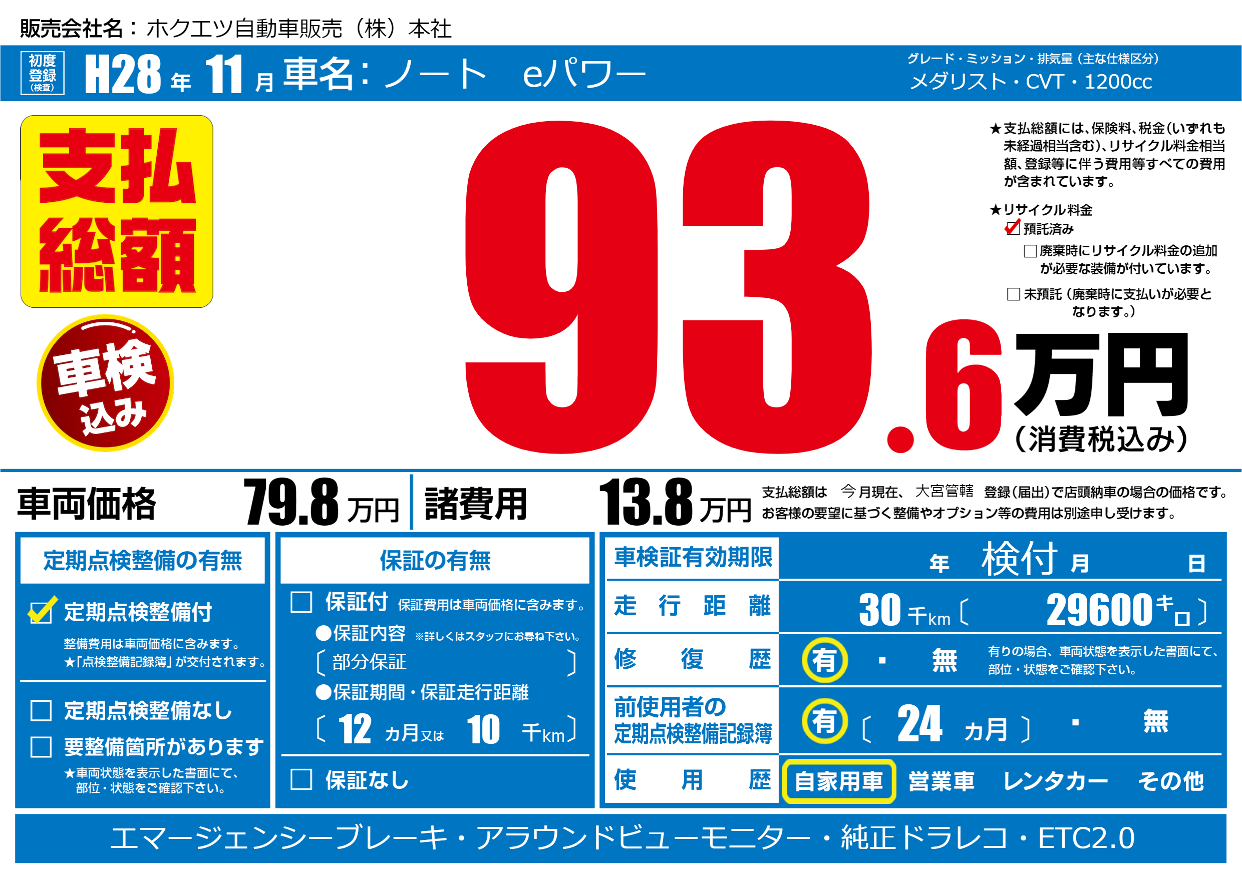 | 車名 | ノート eパワー | グレード ミッション 排気量 |