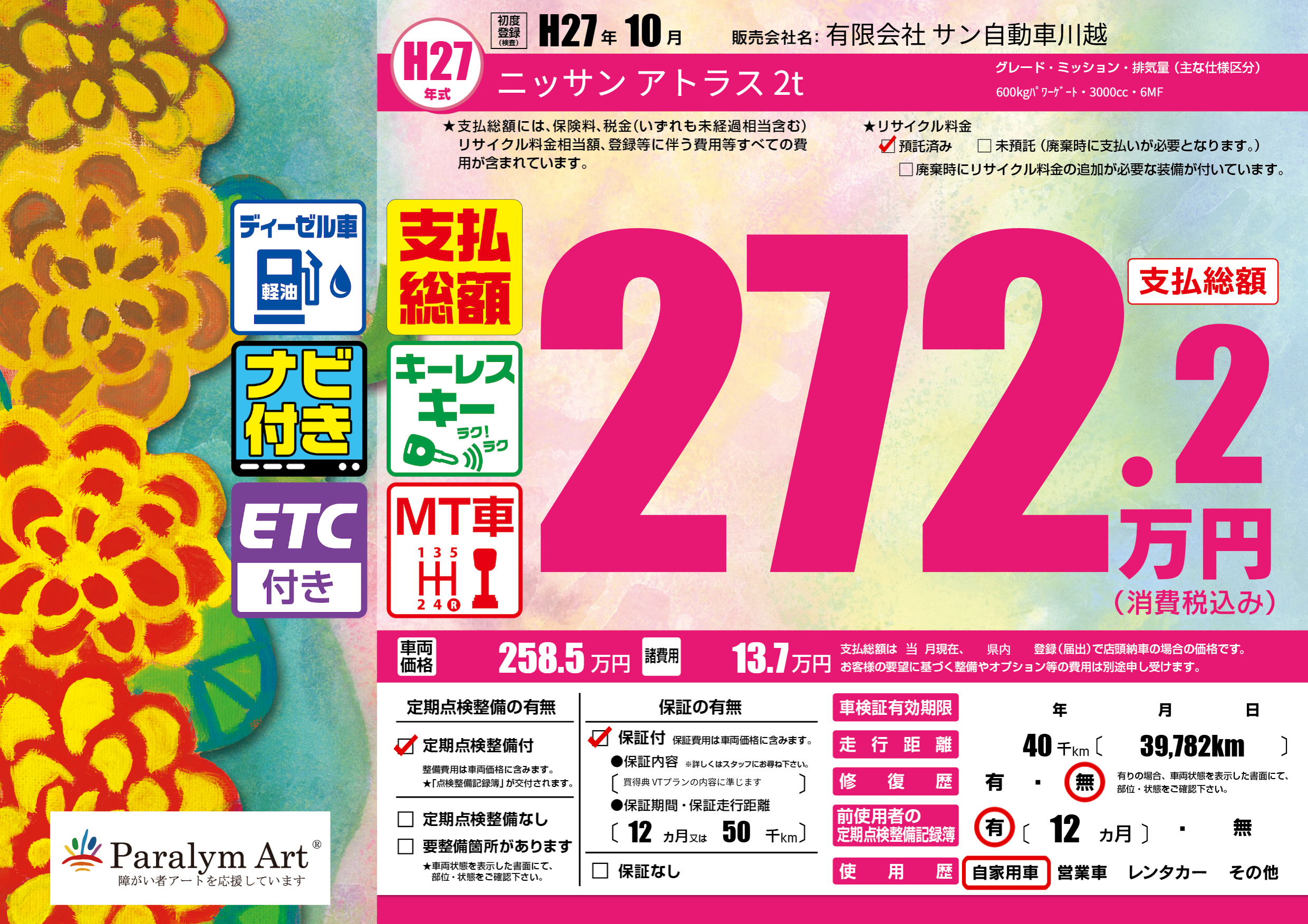 | 車名 | ニッサン アトラス 2t | グレード ミッション 排気量 |
