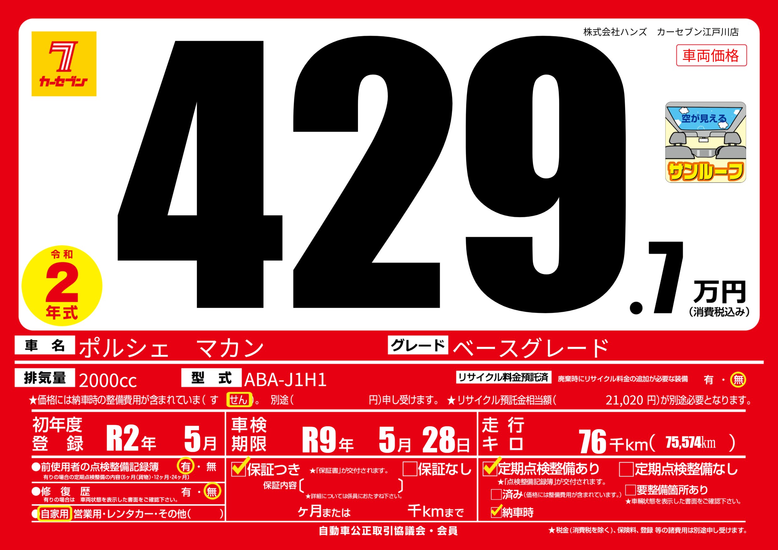 なし | 車検制限 | R9年5月28月 |