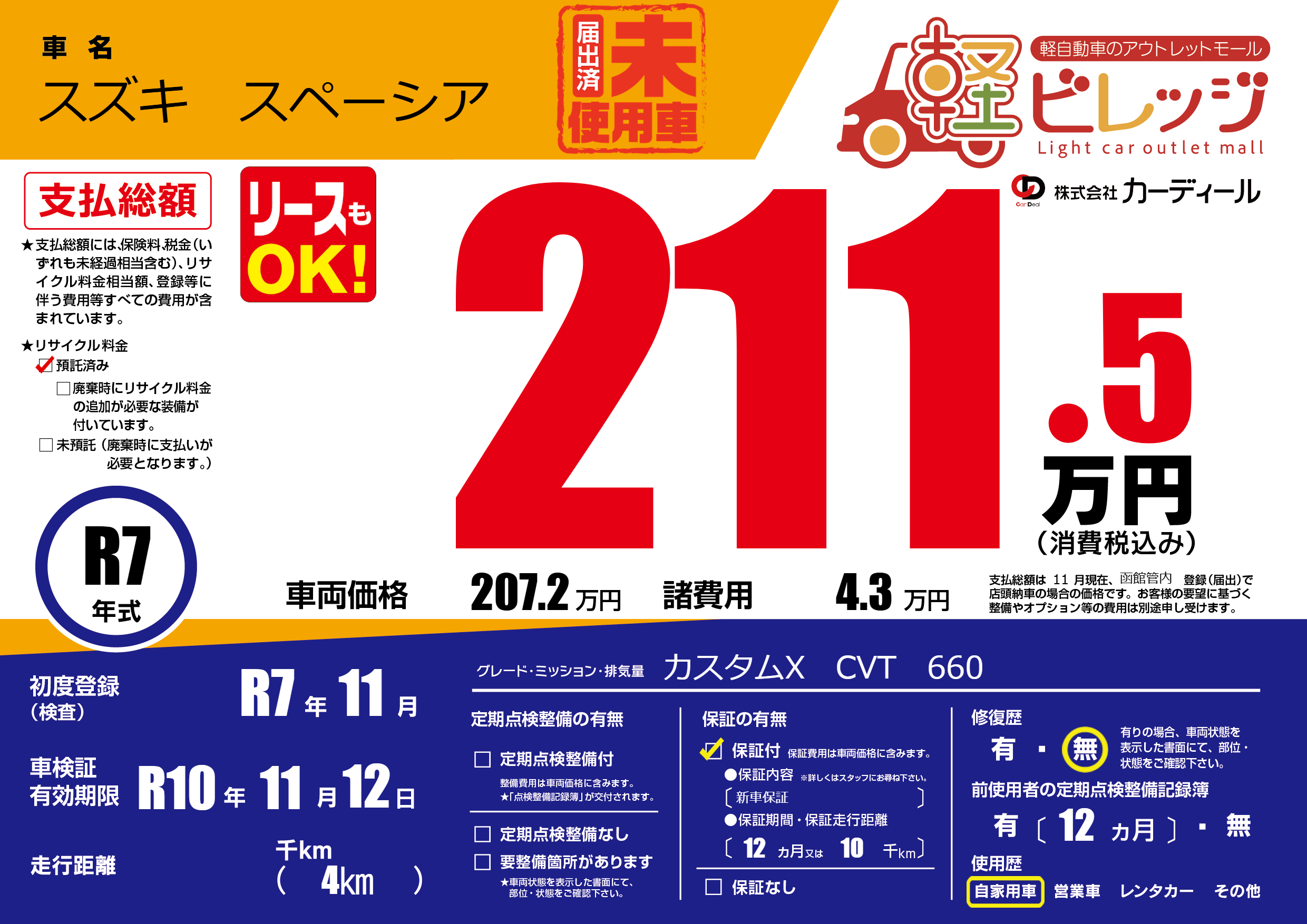 | 走行キロ | - | 初年度登録 | R7年11月 |