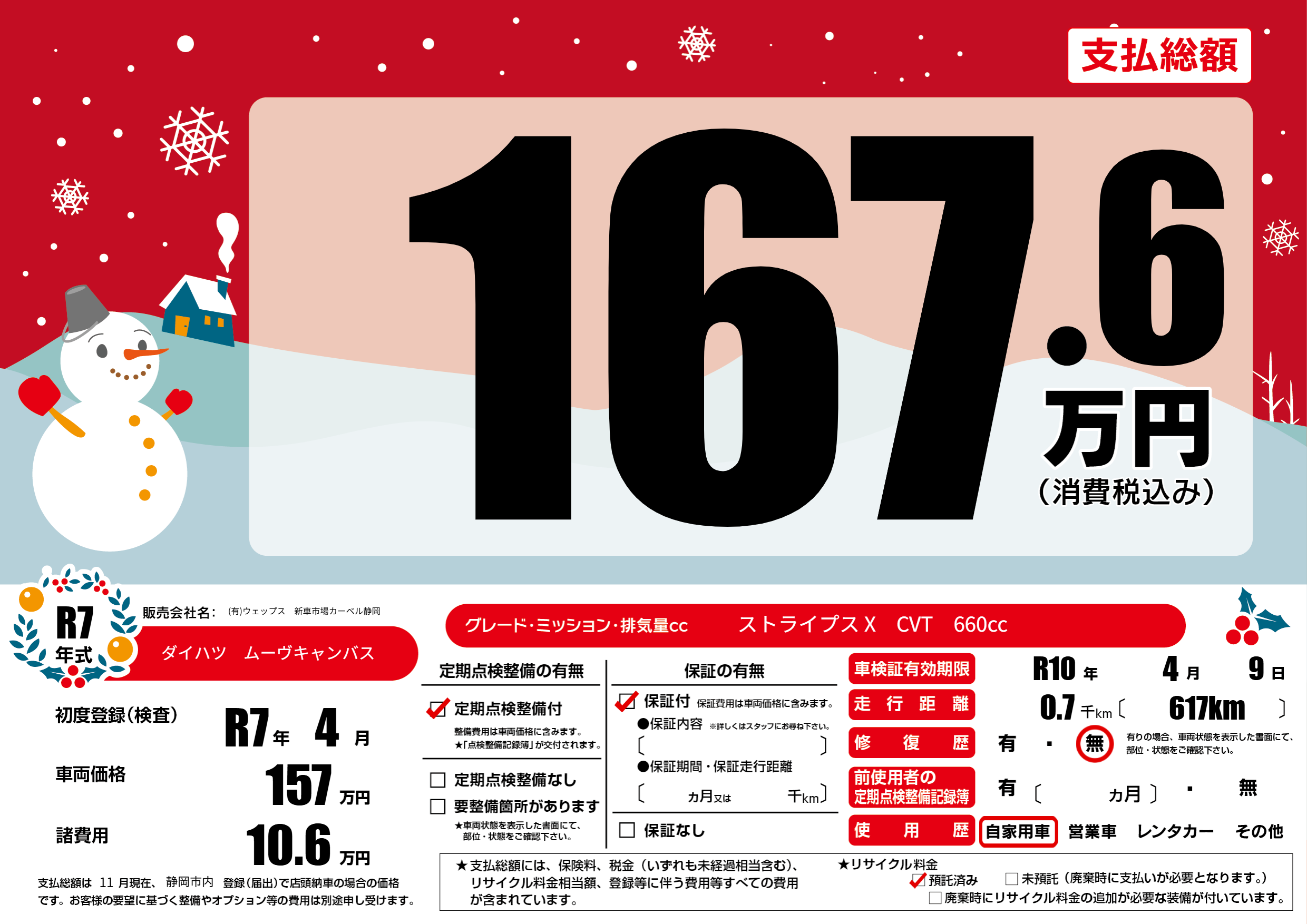 | 走行キロ | - | 初年度登録 | R7年4月 |