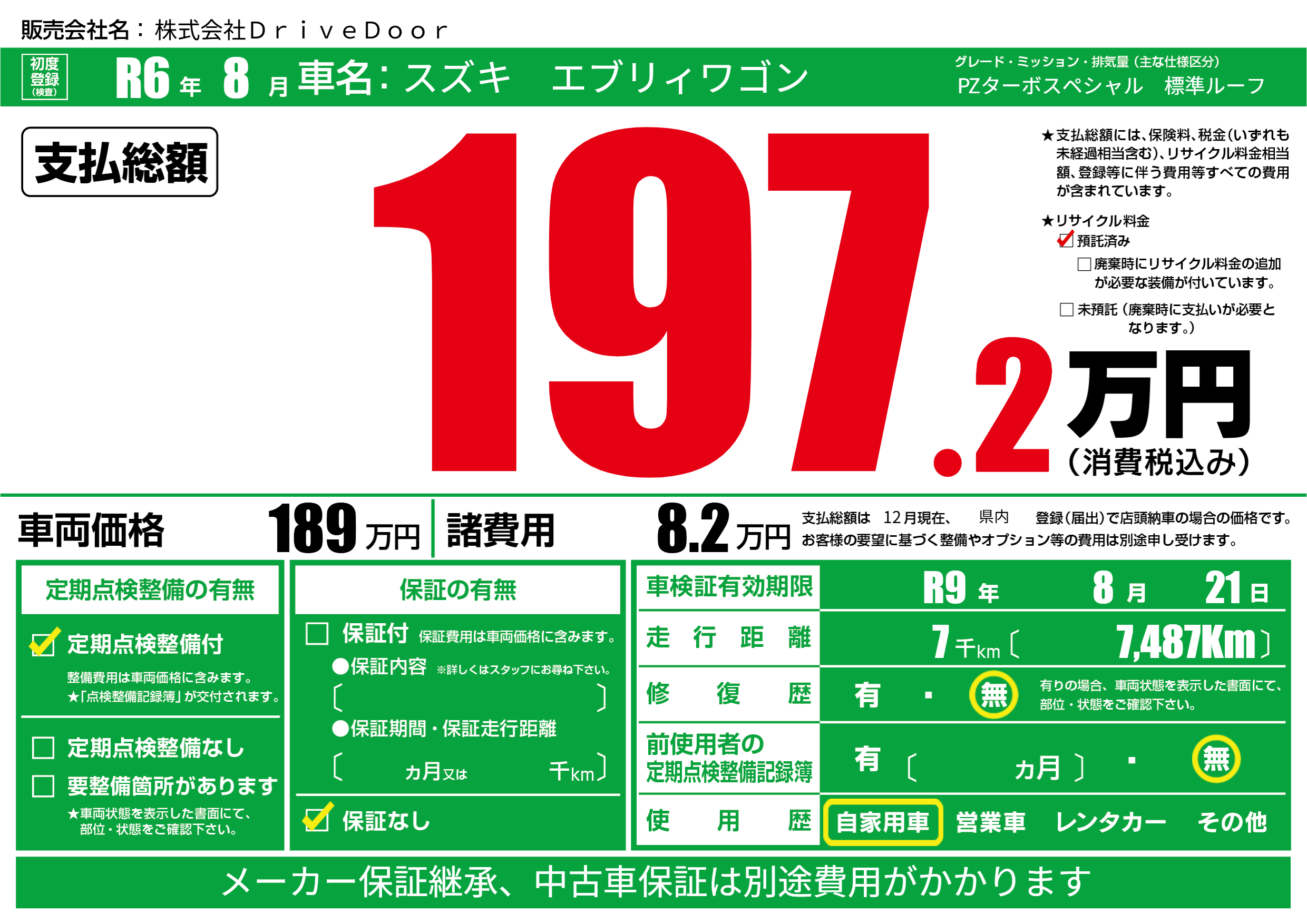 なし | 車検制限 | R9年8月21月 |