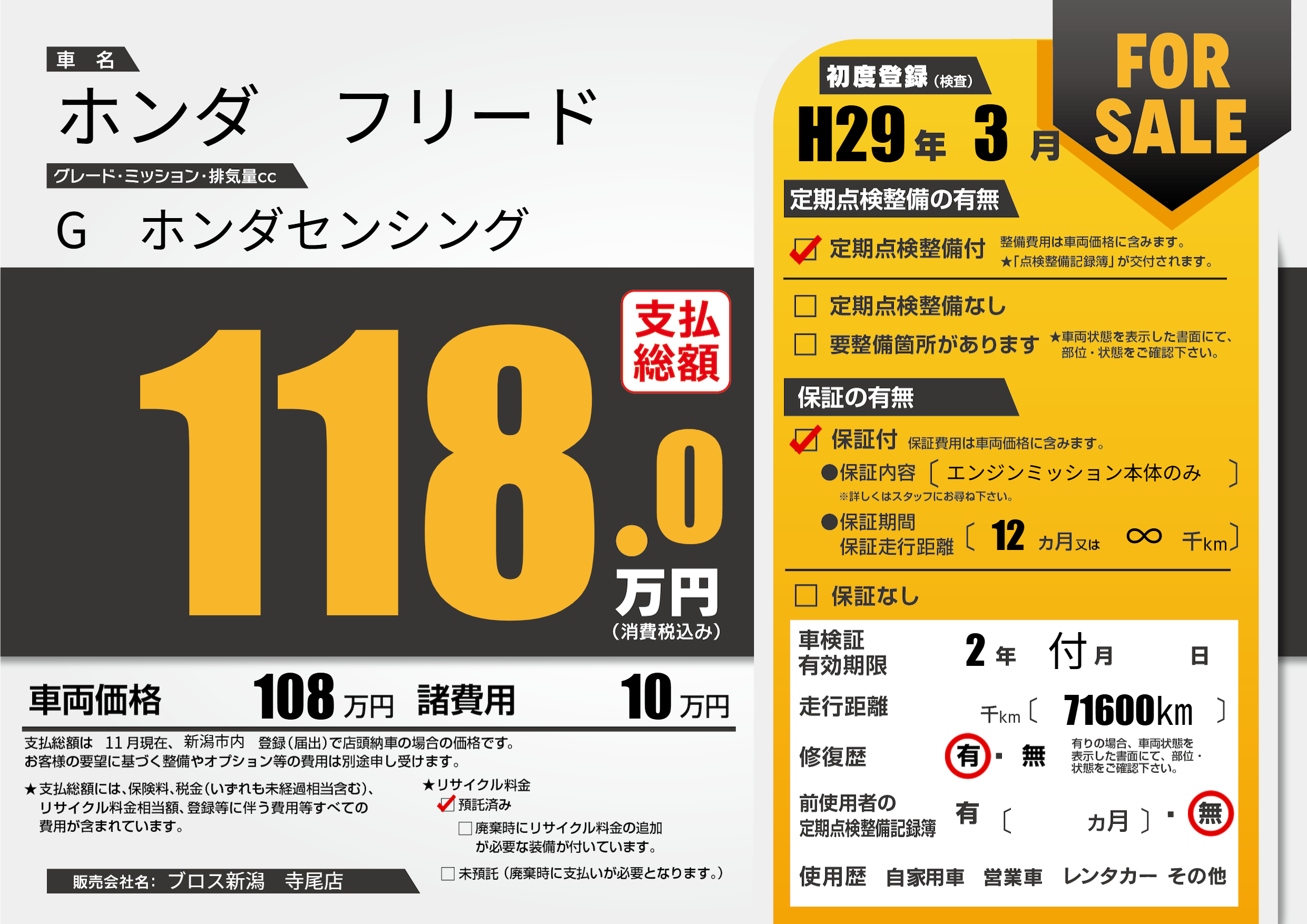 | 走行キロ | - | 初年度登録 | H29年3月 |
