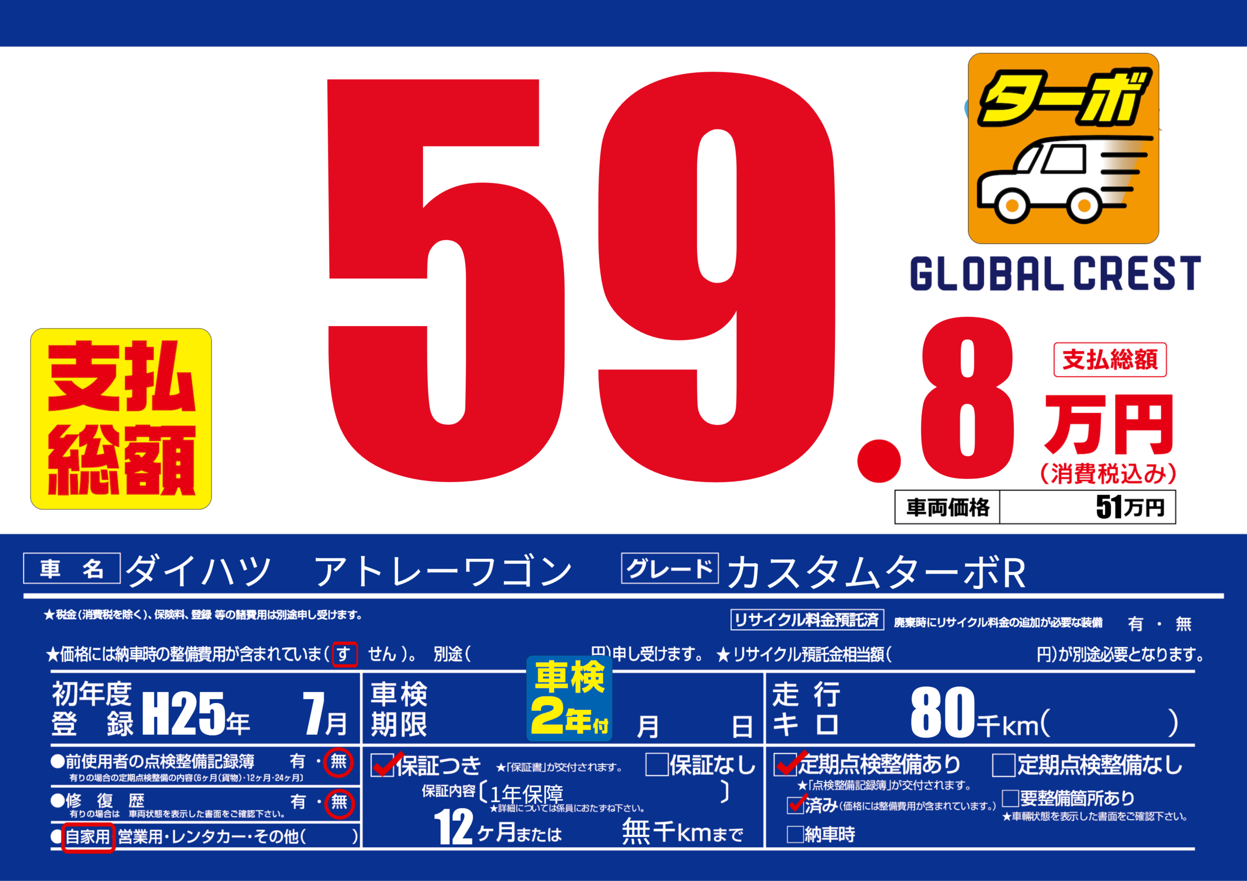 | 定期点検整備 | 定期点検整備あり 定期点検整備済み | ||