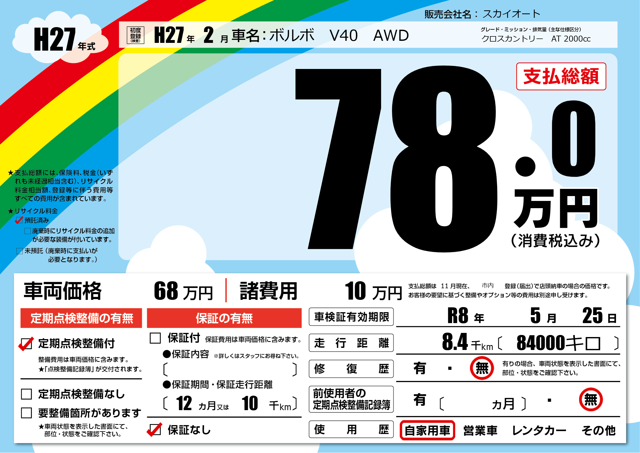 なし | 車検制限 | R8年5月25月 |