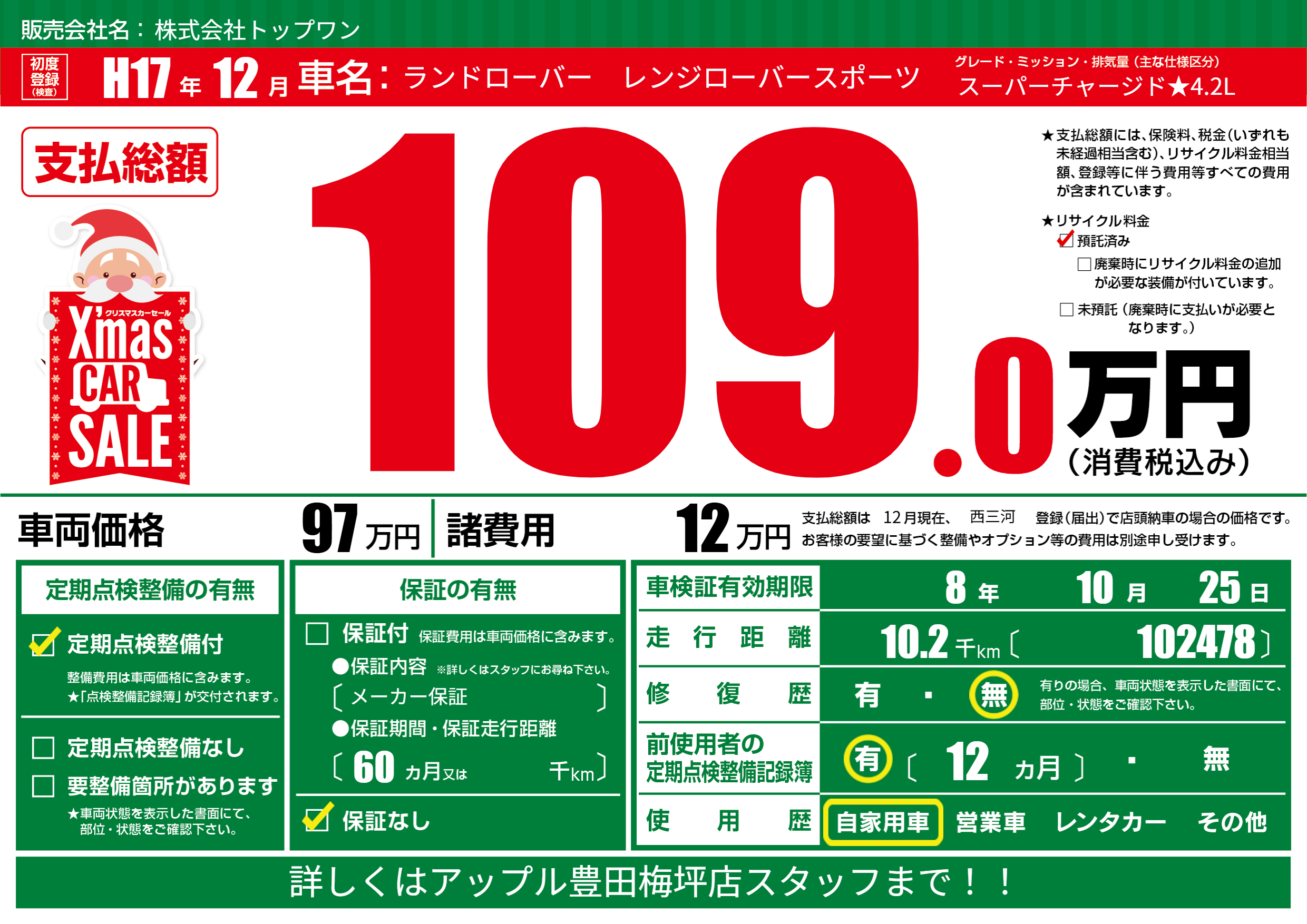 なし | 車検制限 | 8年10月25月 |