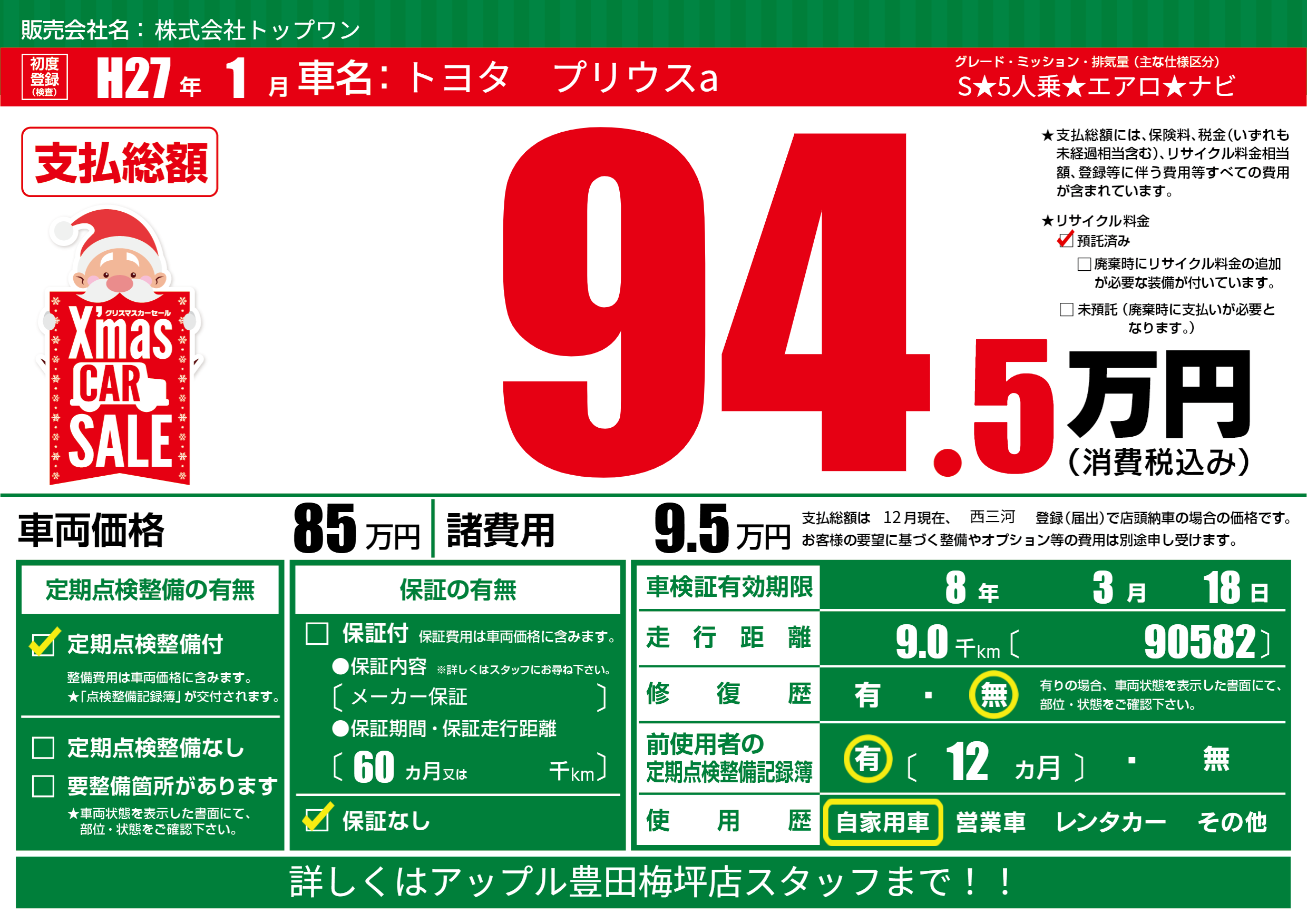 | 定期点検整備 | 定期点検整備あり | ||