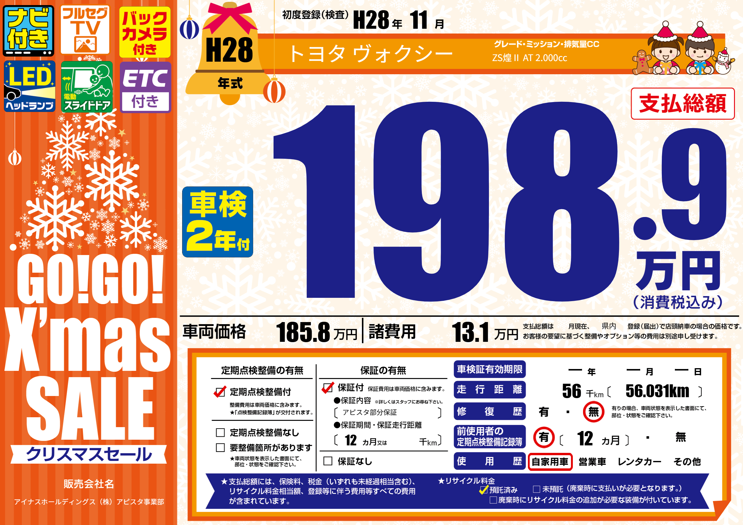 | 走行キロ | 5.6万km | 初年度登録 | H28年11月 |