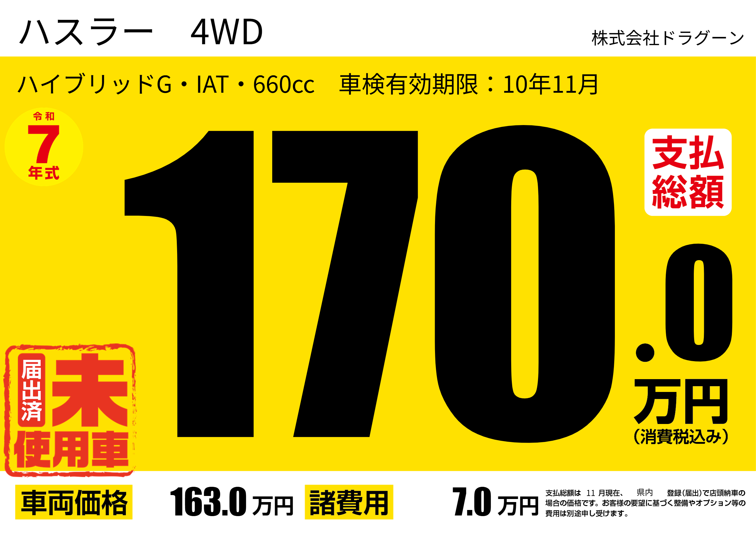| 車名 | ハスラー 4WD | グレード ミッション 排気量 |