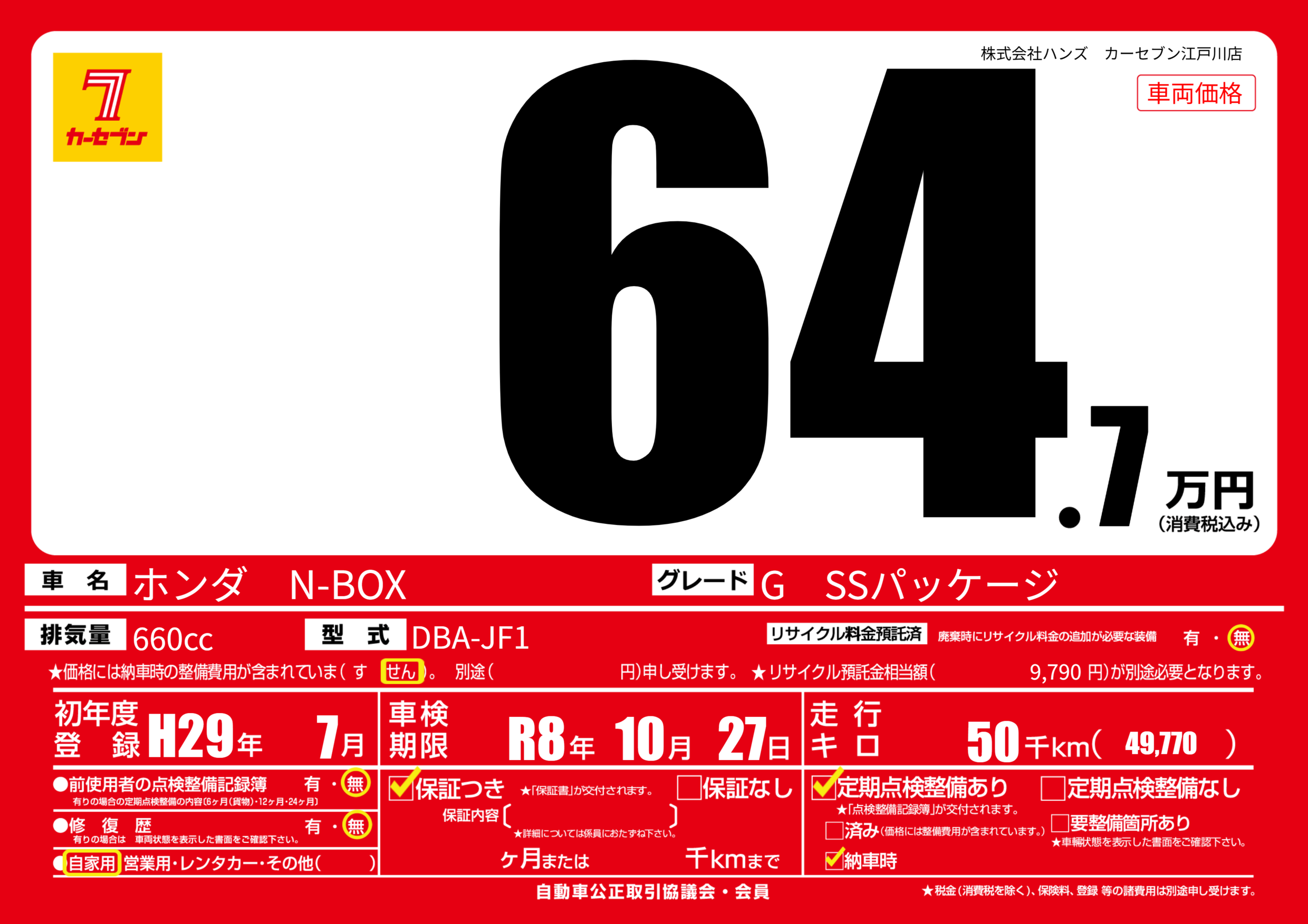 | 車検制限 | R8年 10月 27日 | ||