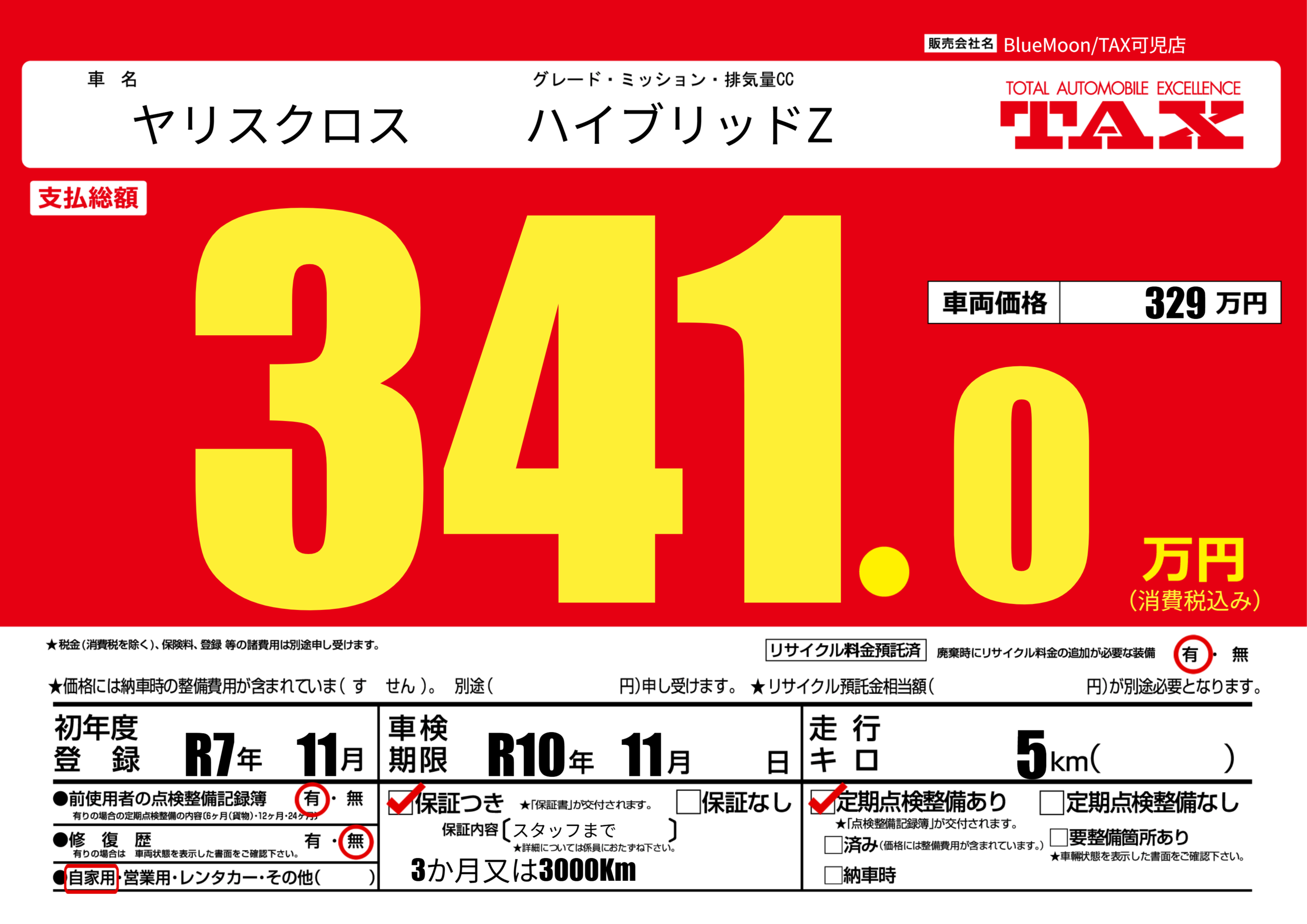 | 車検制限 | R10年 11月 - 日 | ||