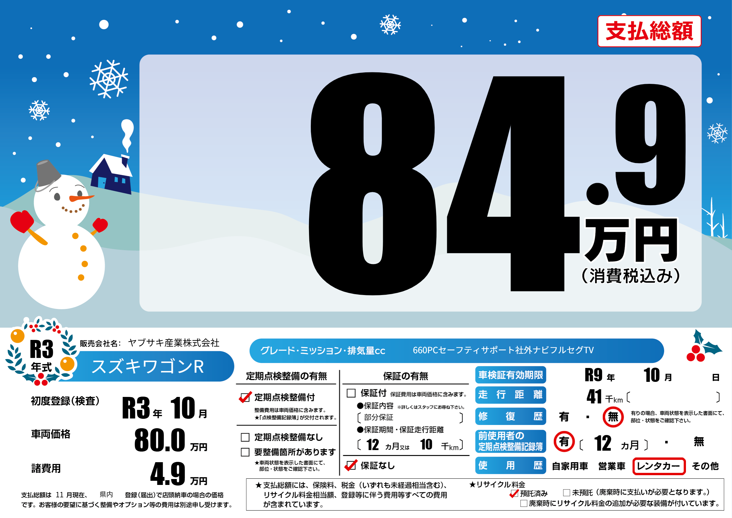 | 走行キロ | 4.1万km | 初年度登録 | R3年10月 |
