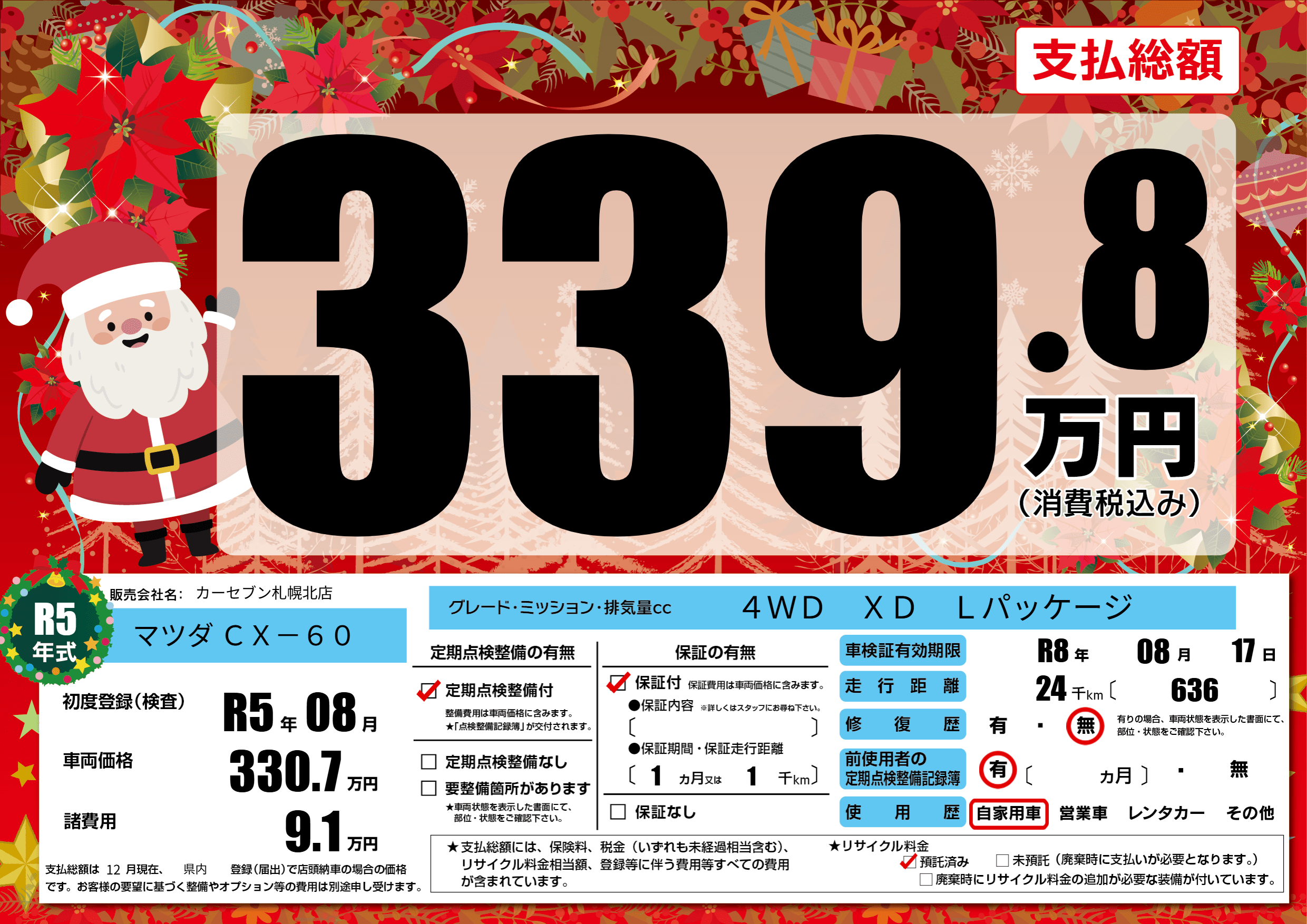 | 走行キロ | 2.4万km | 初年度登録 | R5年08月 |