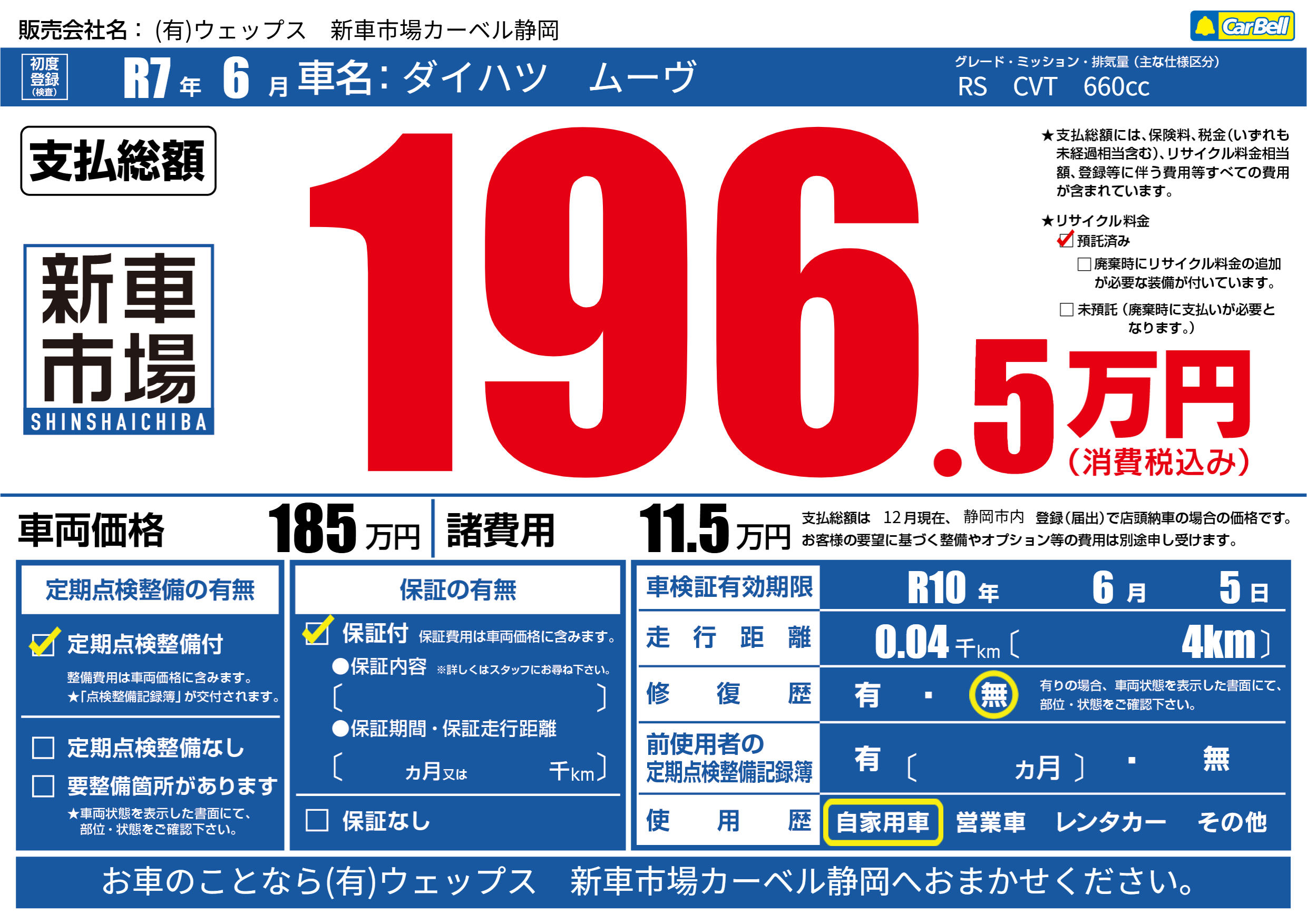 | 走行キロ | - | 初年度登録 | R7年6月 |