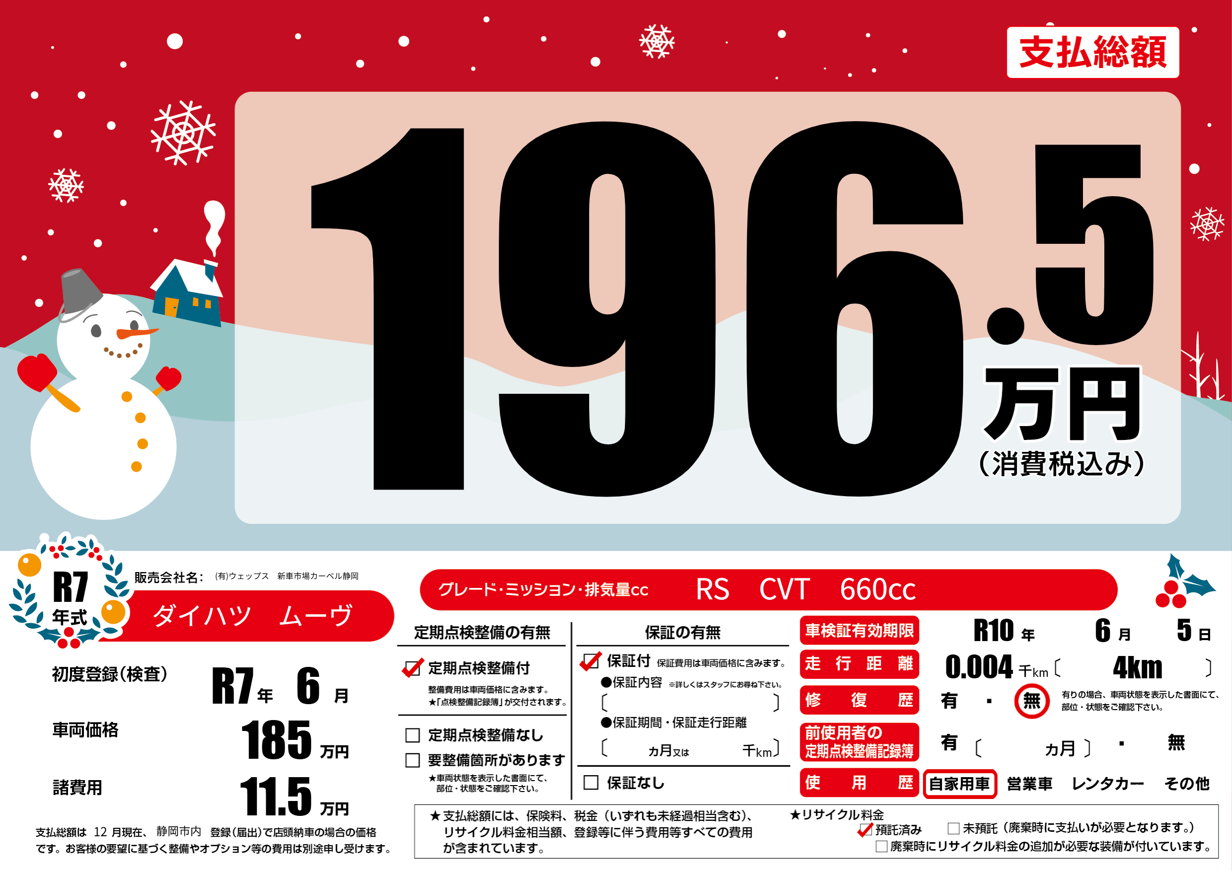 | 走行キロ | - | 初年度登録 | R7年6月 |