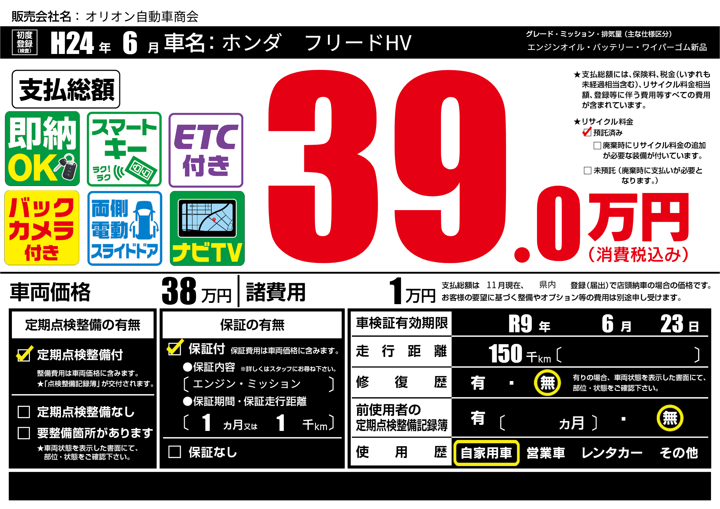 なし | 車検制限 | R9年6月23月 |
