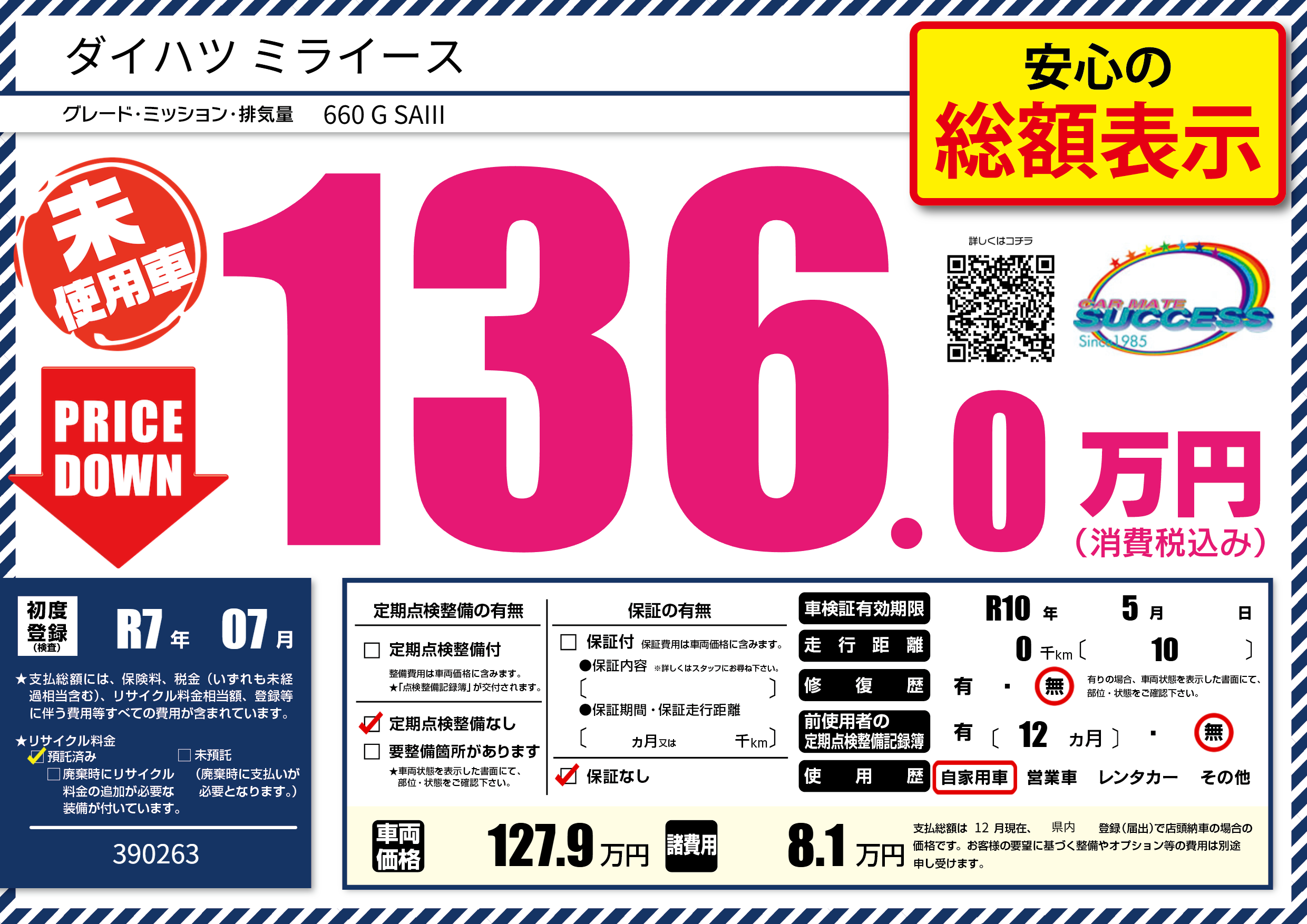 | 車検制限 | R10年 5月 - 日 | ||