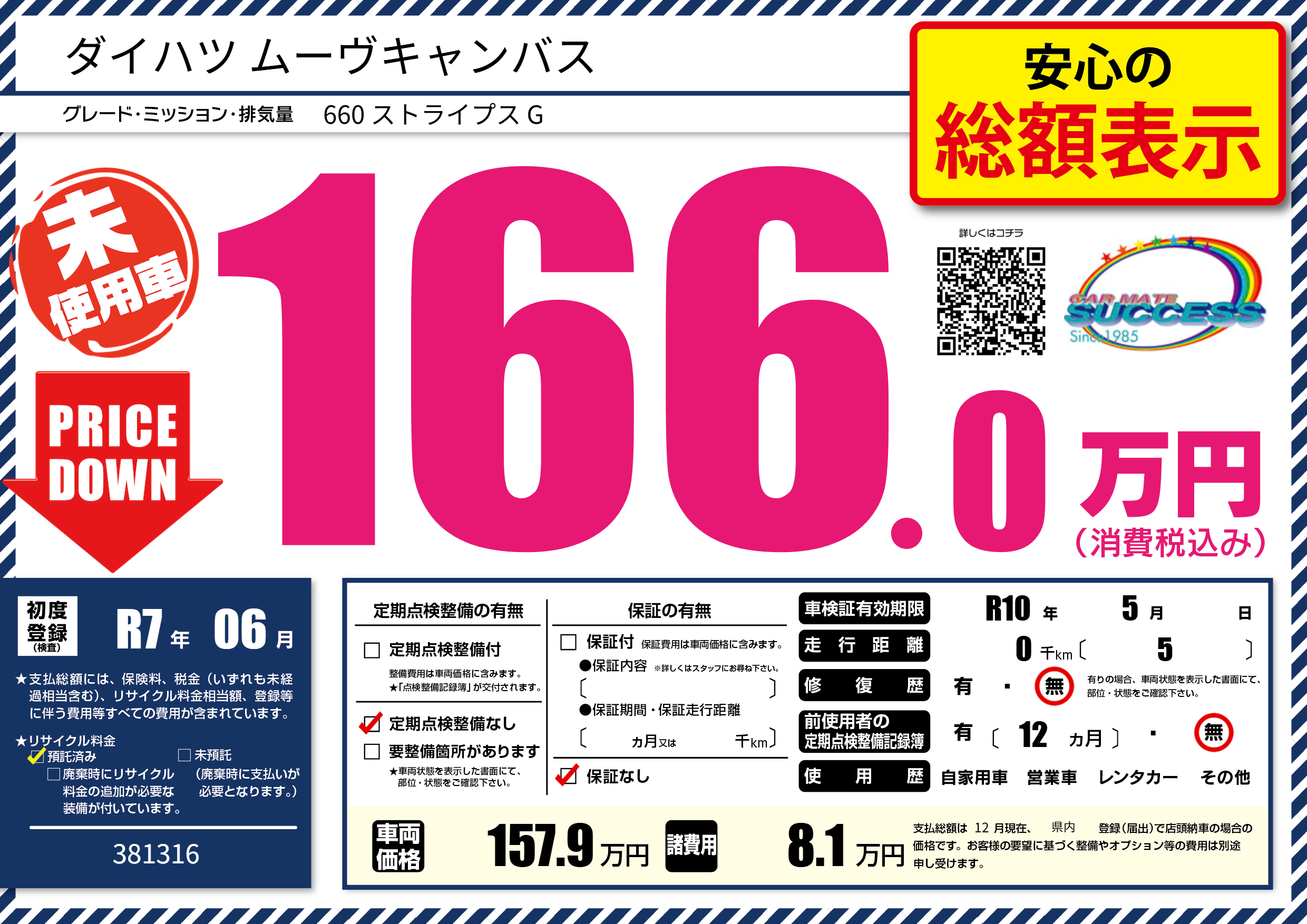| 走行キロ | - | 初年度登録 | R7年06月 |