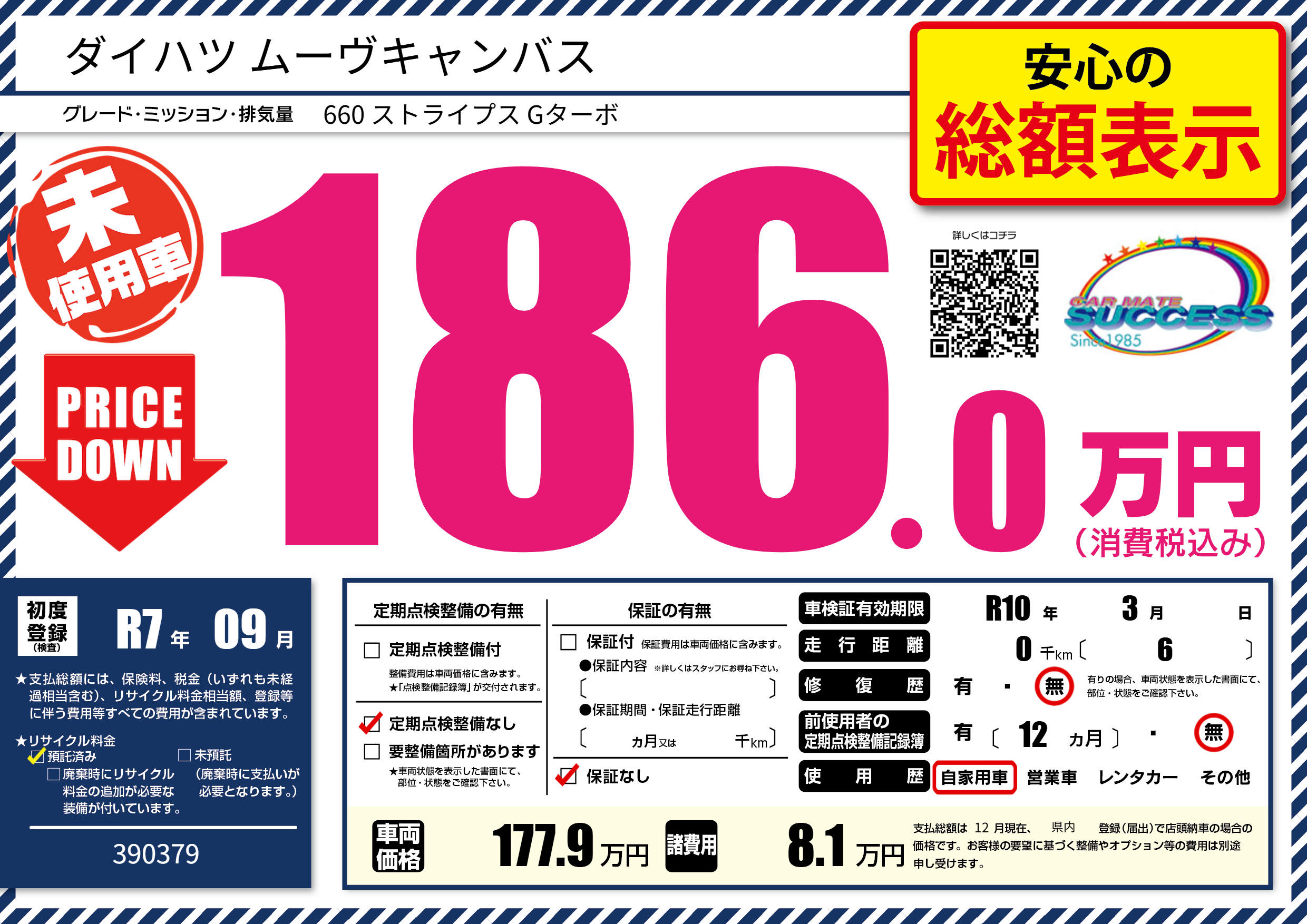 | 走行キロ | - | 初年度登録 | R7年09月 |