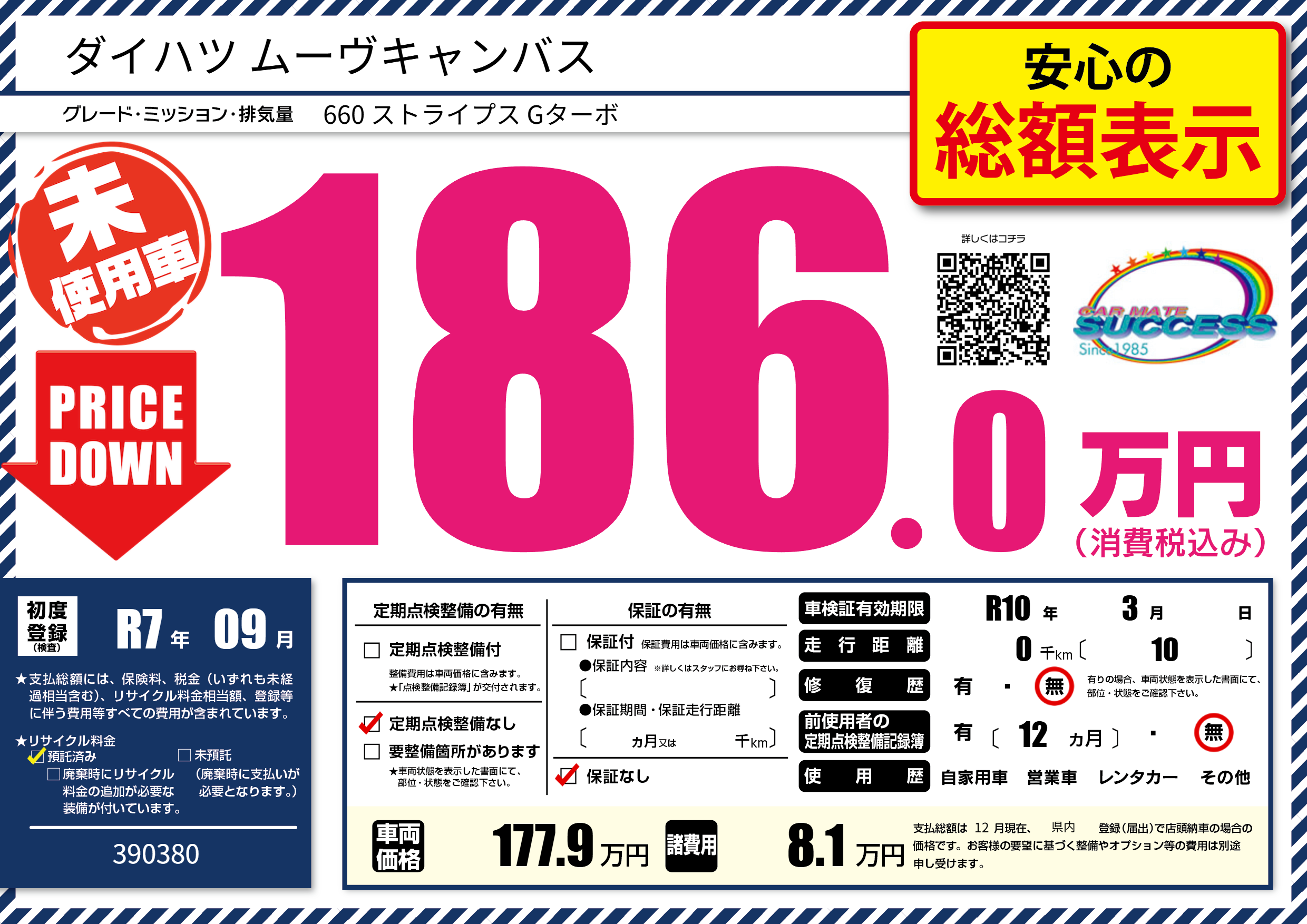 | 走行キロ | - | 初年度登録 | R7年09月 |