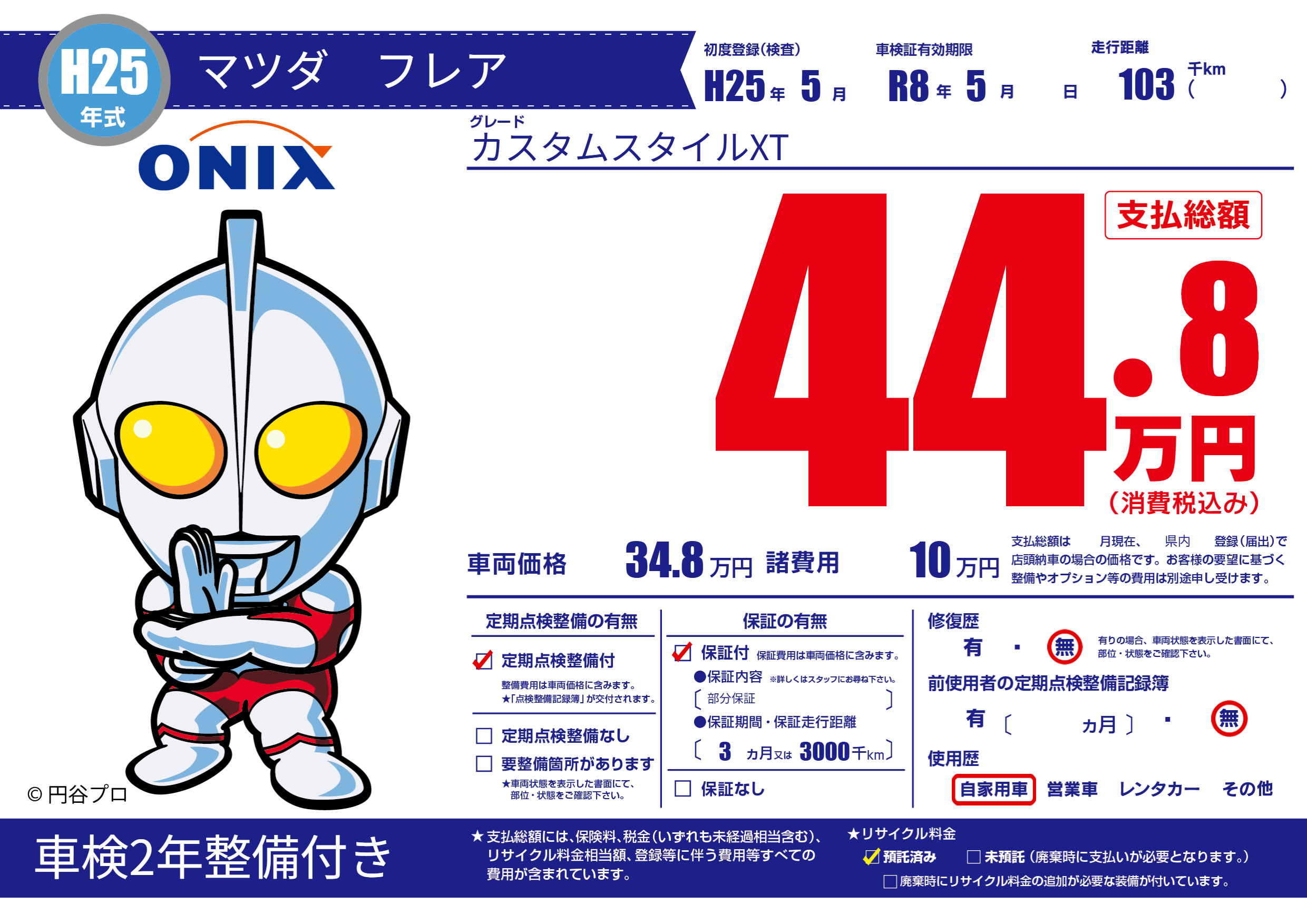 | 走行キロ | 10.3万km | 初年度登録 | H25年5月 |