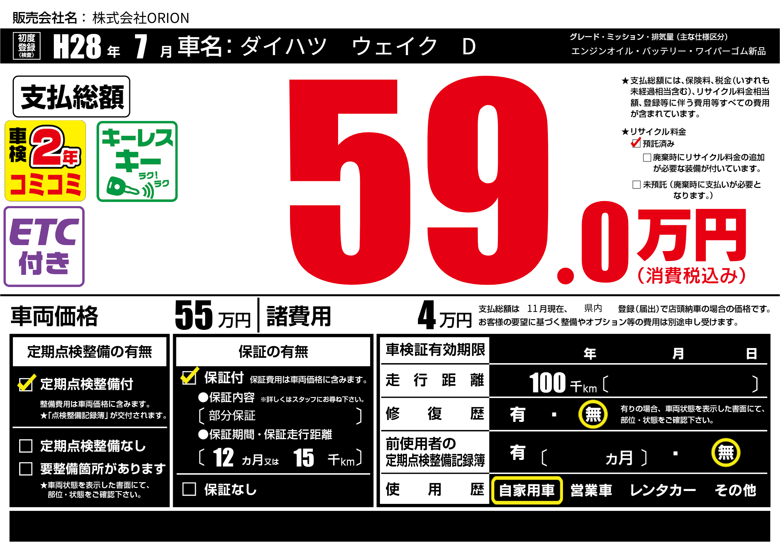 | 定期点検整備 | 定期点検整備あり | ||