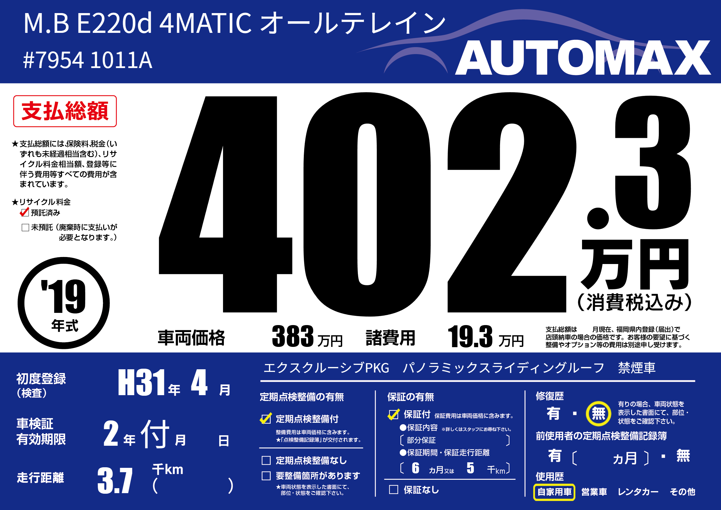| 定期点検整備 | 定期点検整備あり | ||