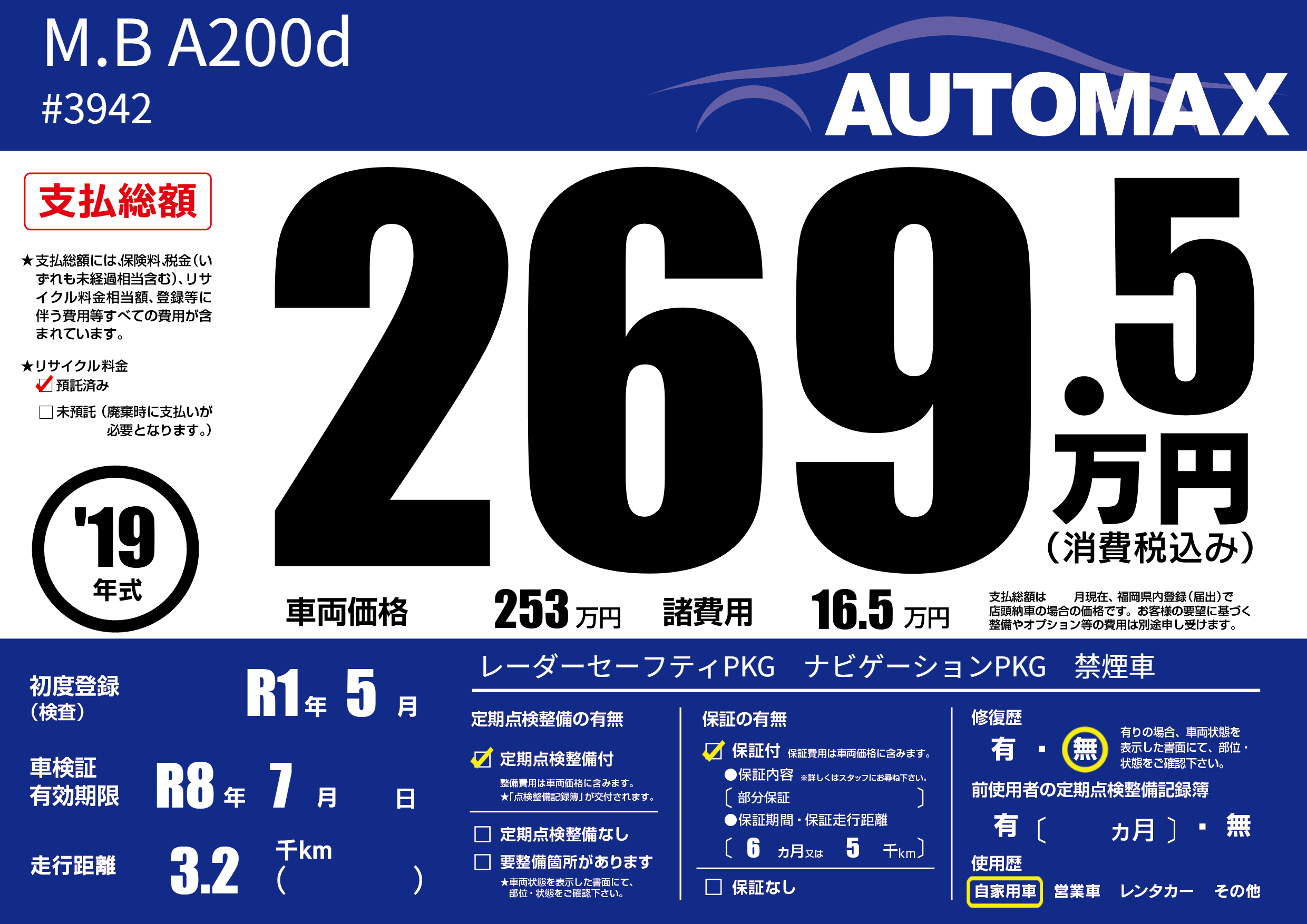 | 車検制限 | R8年 7月 - 日 | ||