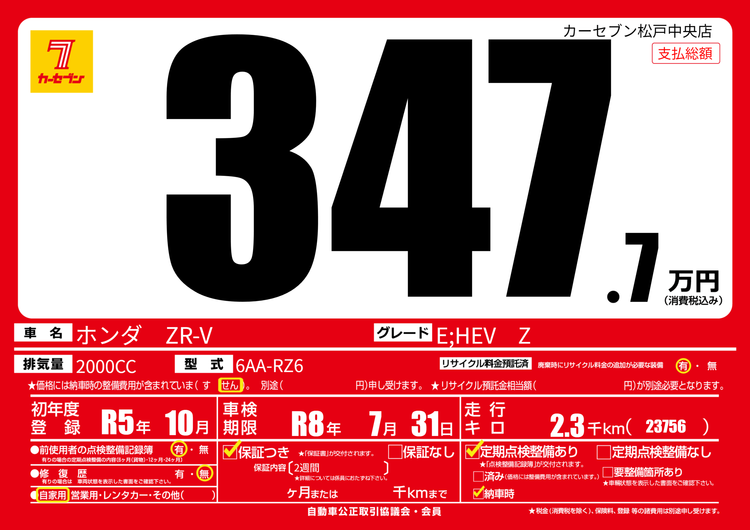 なし | 車検制限 | R8年7月31月 |