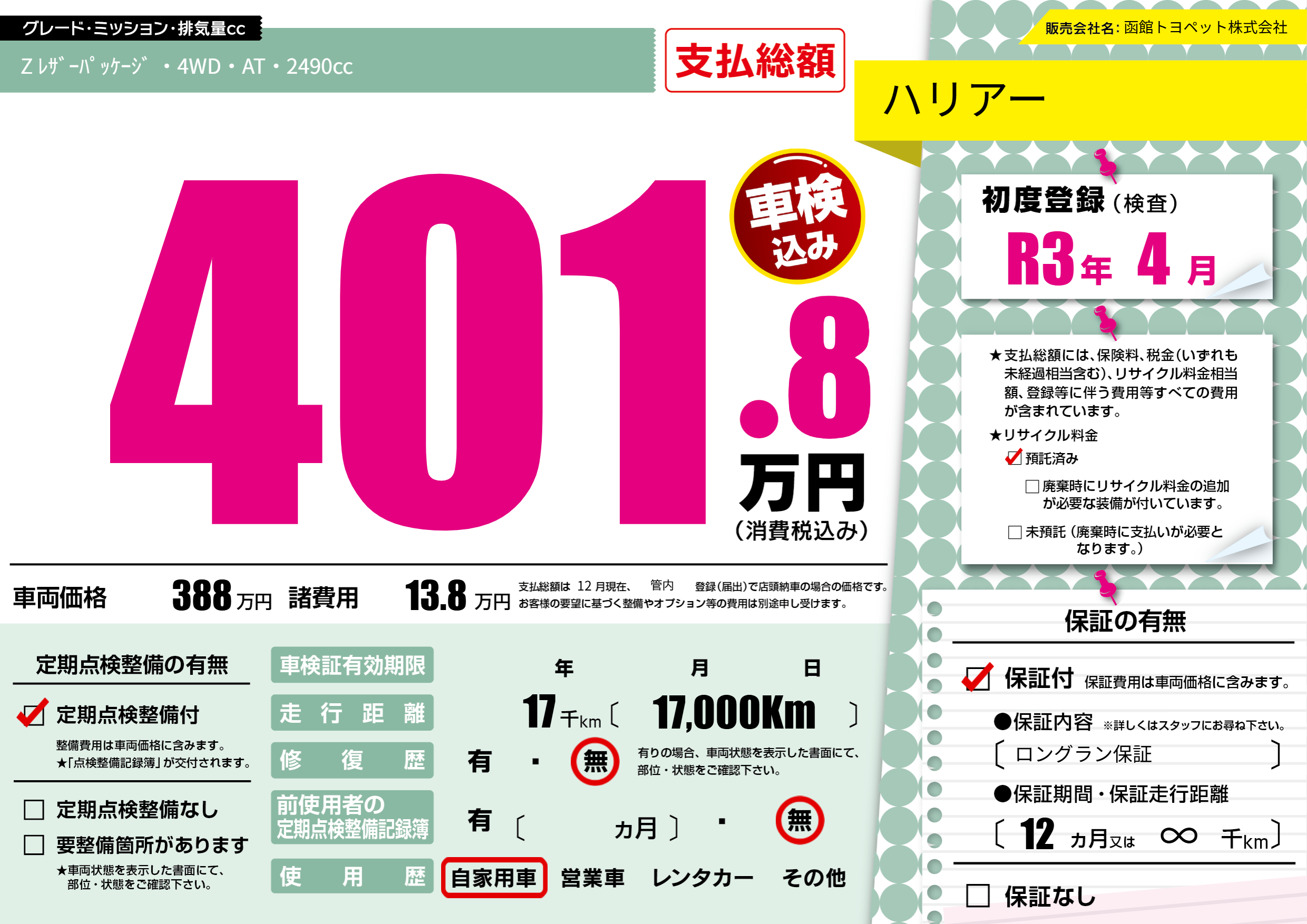 | 初年度登録 | R3年4月 | ||