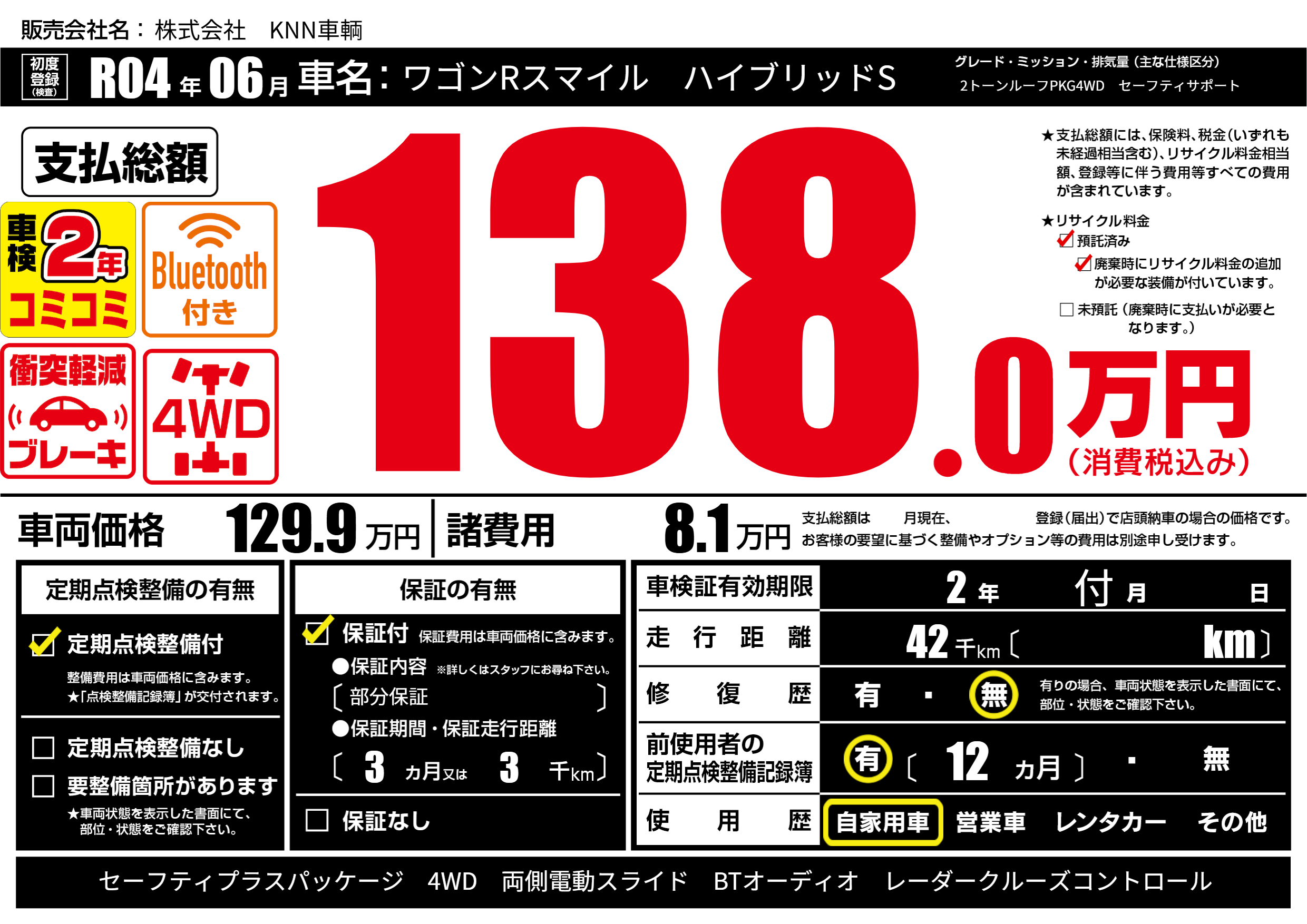 | 走行キロ | 4.2万km | 初年度登録 | R04年06月 |