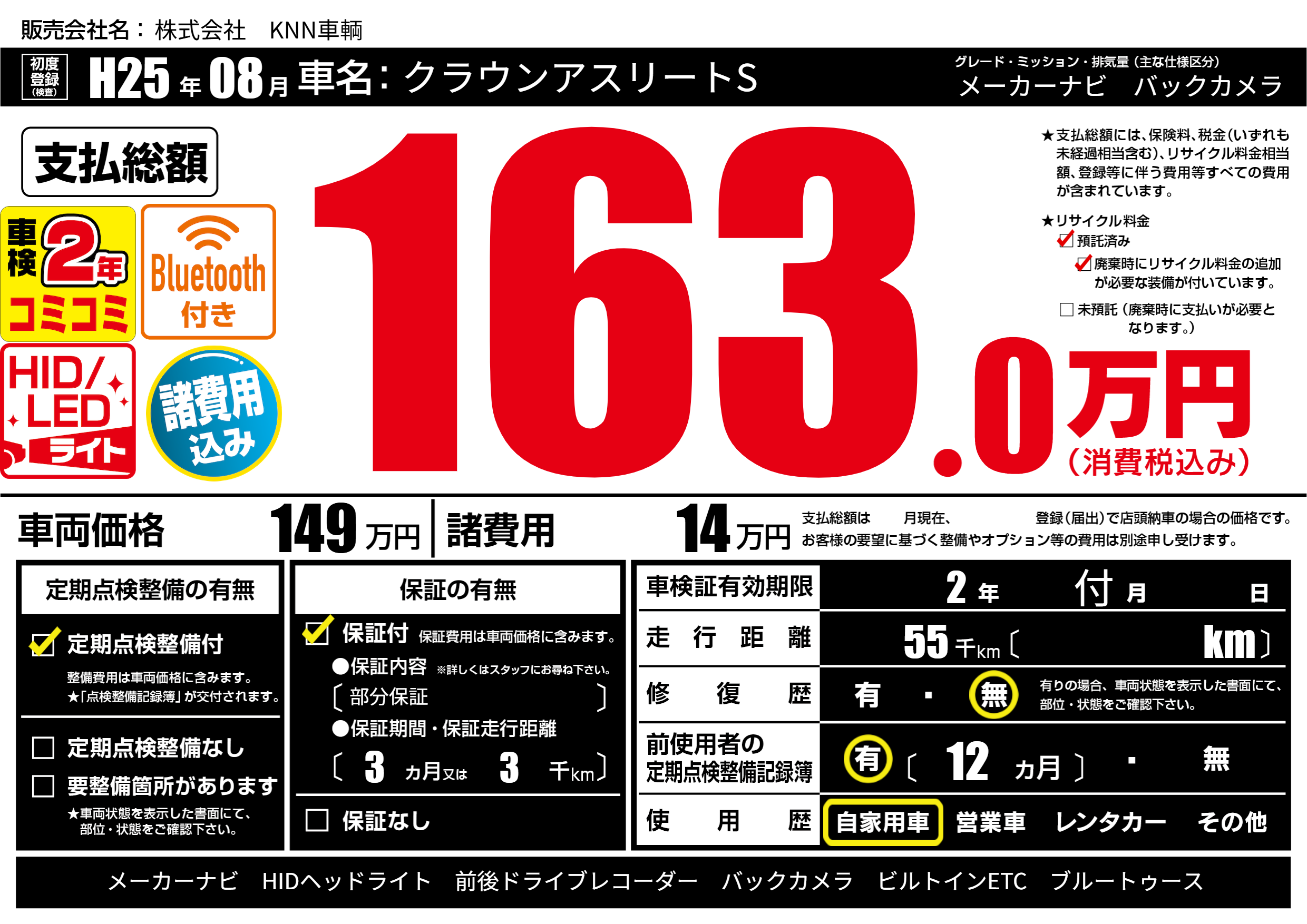 | 定期点検整備 | 定期点検整備あり | ||