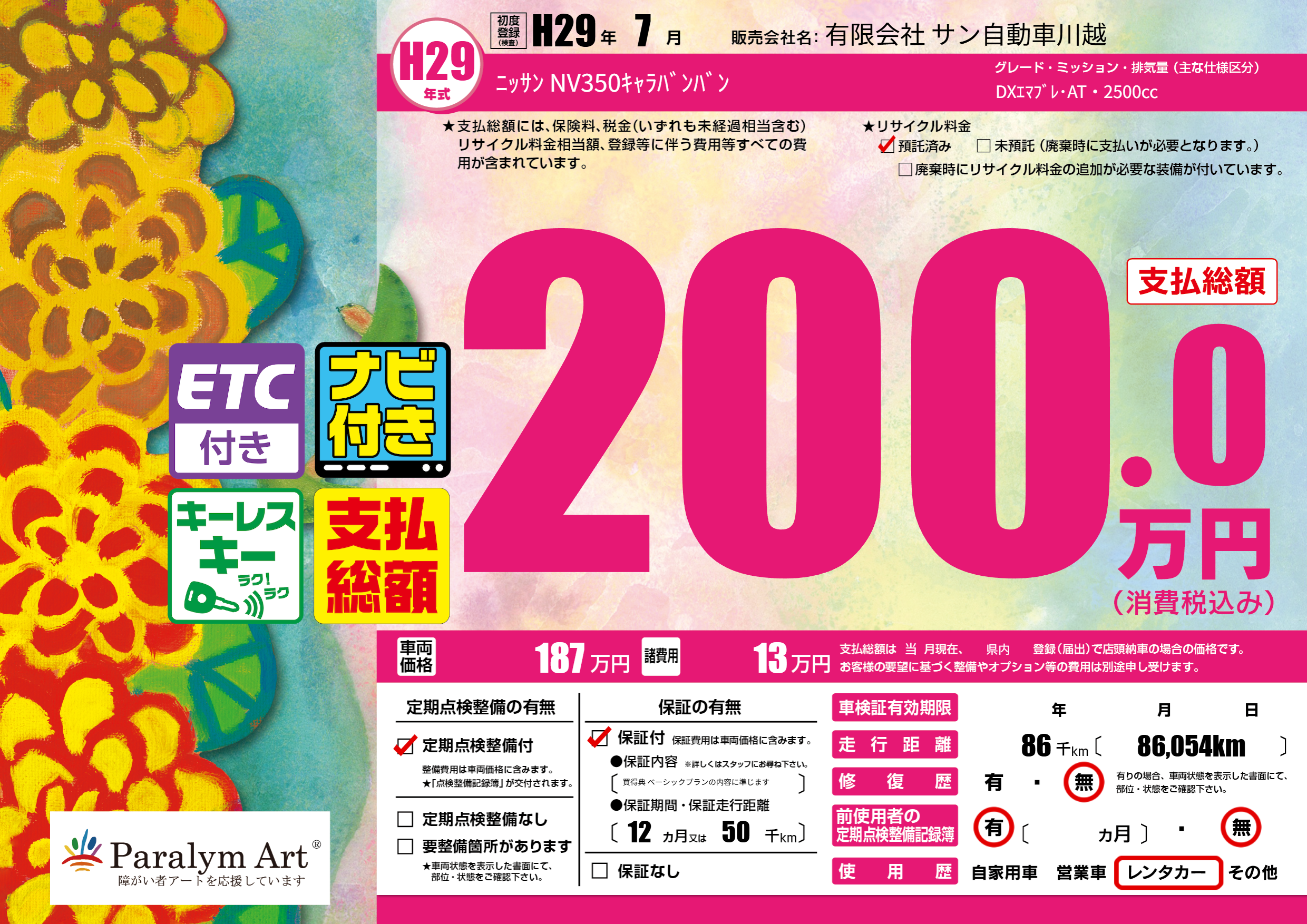| 走行キロ | 8.6万km | 初年度登録 | H29年7月 |
