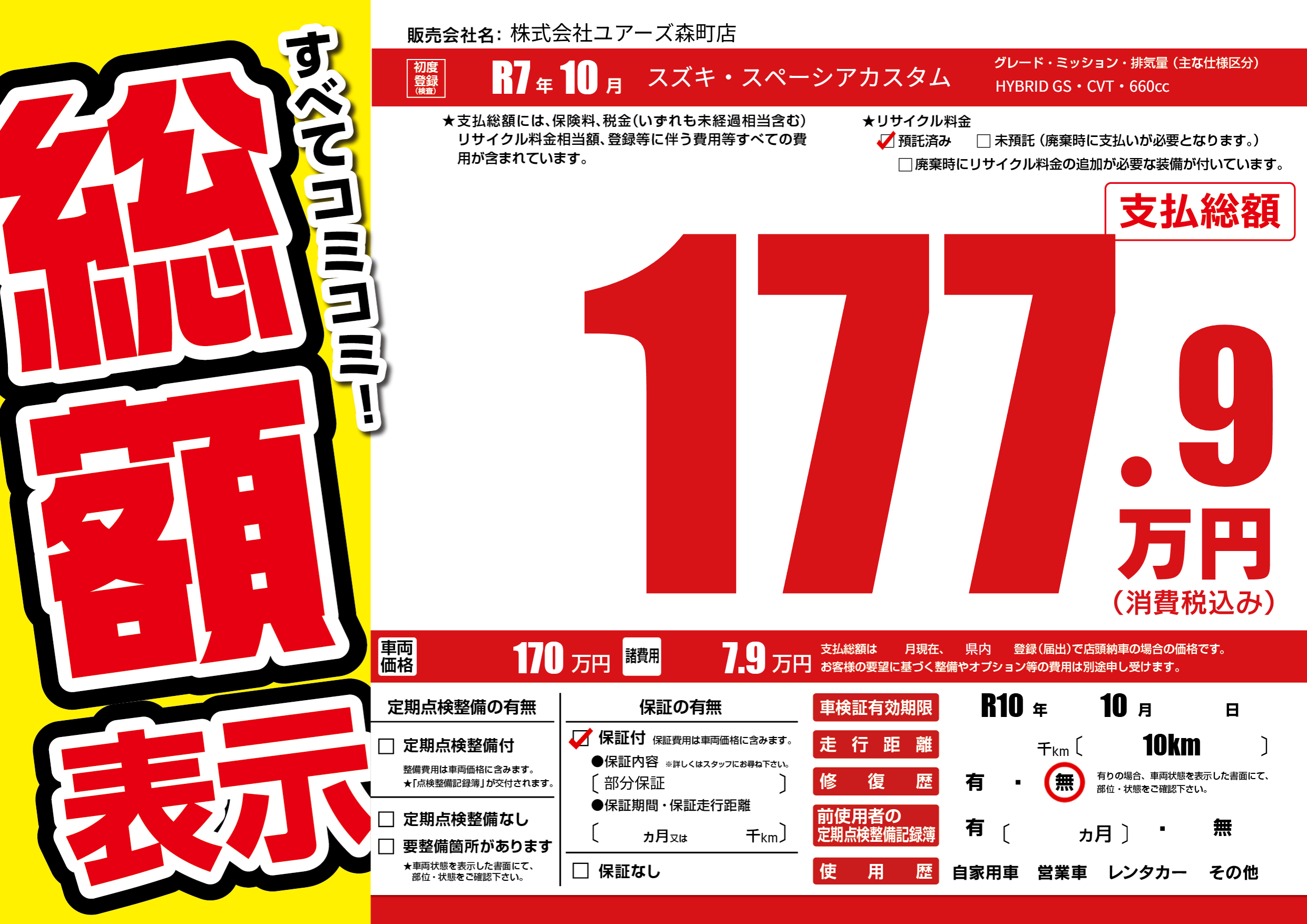 | 車検制限 | R10年 10月 - 日 | ||